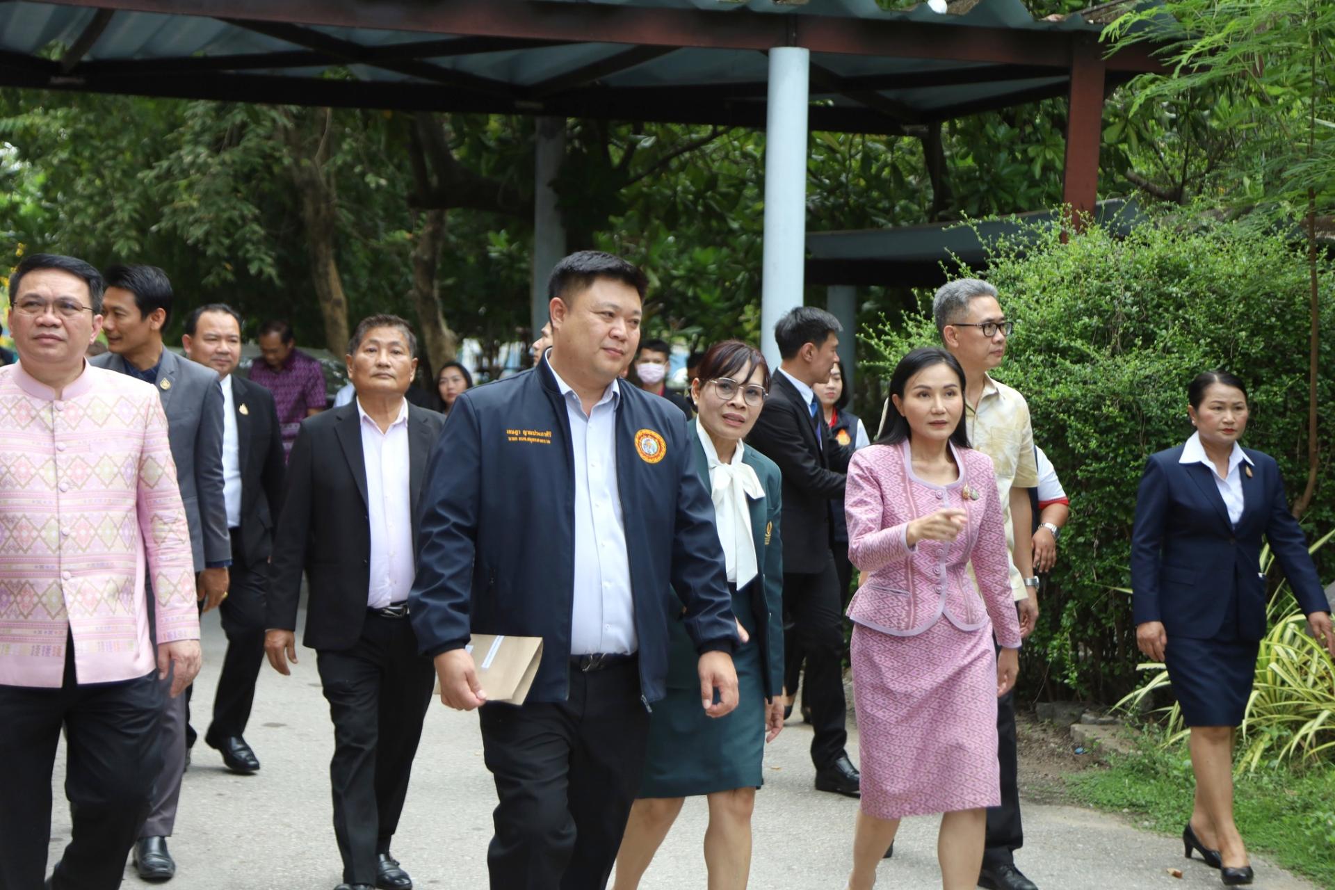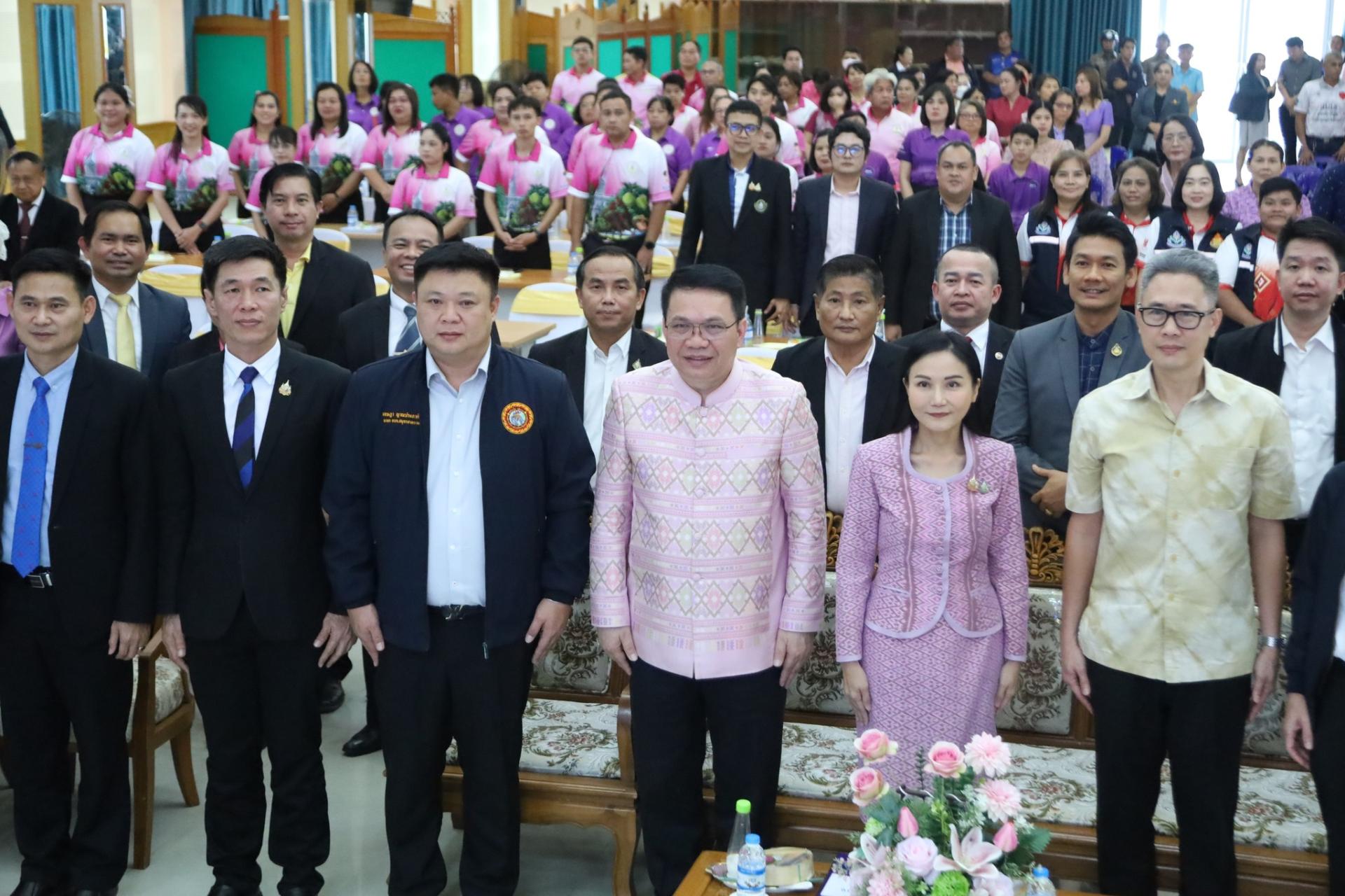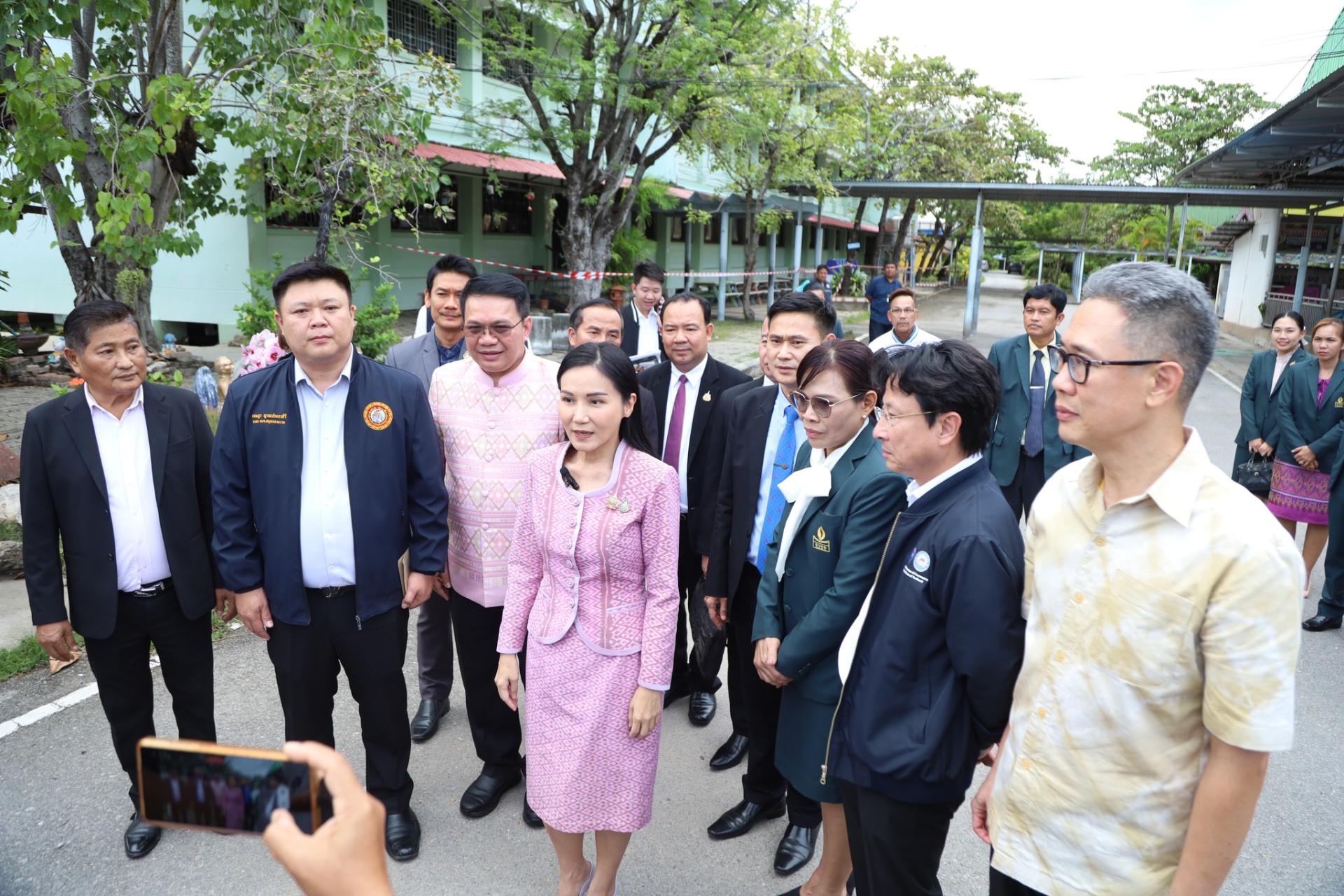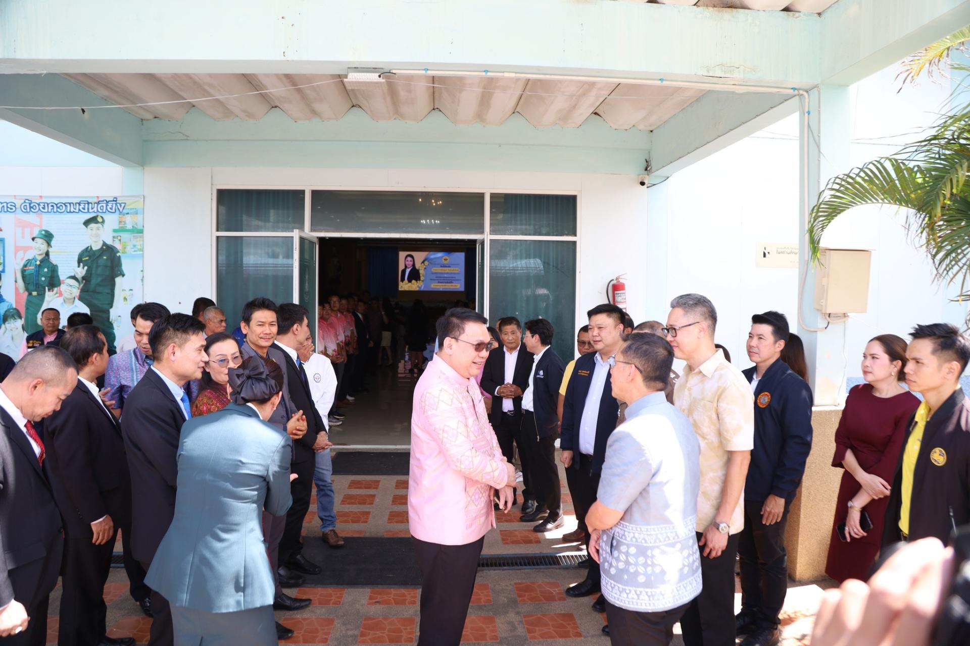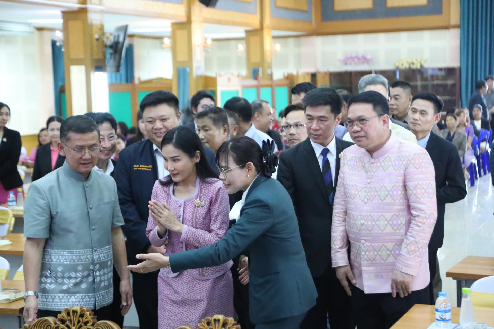 นำคณะผู้บริหาร สมาชิกสภาฯ และข้าราชการ ร่วมต้อนรับ ศาสตราจารย์ ดร.นฤมล ภิญโญสินวัฒน์ รัฐมนตรีว่าการกระทรวงศึกษาธิการ, นายพิเชฐ โพธิ์ภักดี เลขาธิการคณะกรรมการการศึกษาขั้นพื้นฐาน(กพฐ.) และคณะฯ