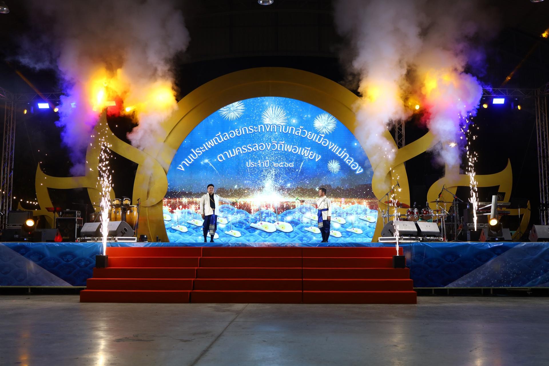 กล่าวรายงานการจัด “งานประเพณีลอยกระทงกาบกล้วยเมืองแม่กลอง ตามครรลองวิถีพอเพียง” ประจำปี 2568 เพื่อส่งเสริมการท่องเที่ยว กระตุ้นเศรษฐกิจ ของจังหวัดสมุทรสงคราม
