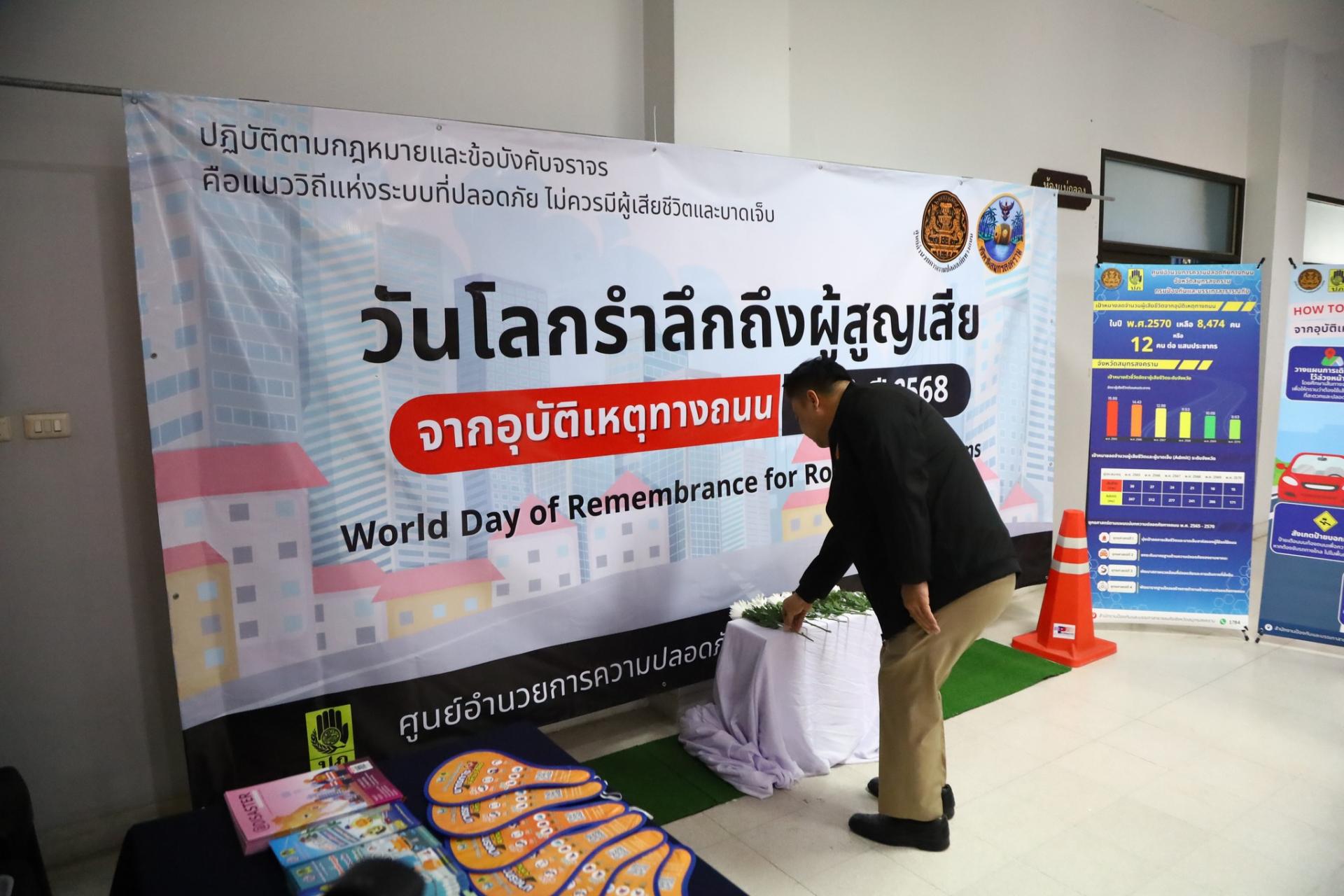 พร้อมทั้งร่วมกิจกรรมเนื่องในวันโลกรำลึกถึงผู้สูญเสียจากอุบัติเหตุทางถนน และร่วมรณรงค์ยุติความรุนแรง ต่อเด็ก สตรี และบุคคลในครอบครัว ณ ห้องประชุมแม่กลอง ชั้น5 ศาลากลางจังหวัดสมุทรสงคราม
