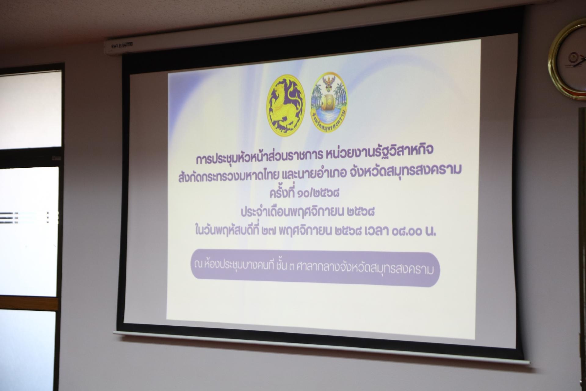 ร่วมการประชุมคณะกรมการจังหวัด และหัวหน้าส่วนจังหวัดสมุทรสงคราม ประจำเดือนพฤศจิกายน โดยมีนายชยชัย แสงอินทร์ ผู้ว่าราชการจังหวัดสมุทรสงคราม เป็นประธานการประชุม