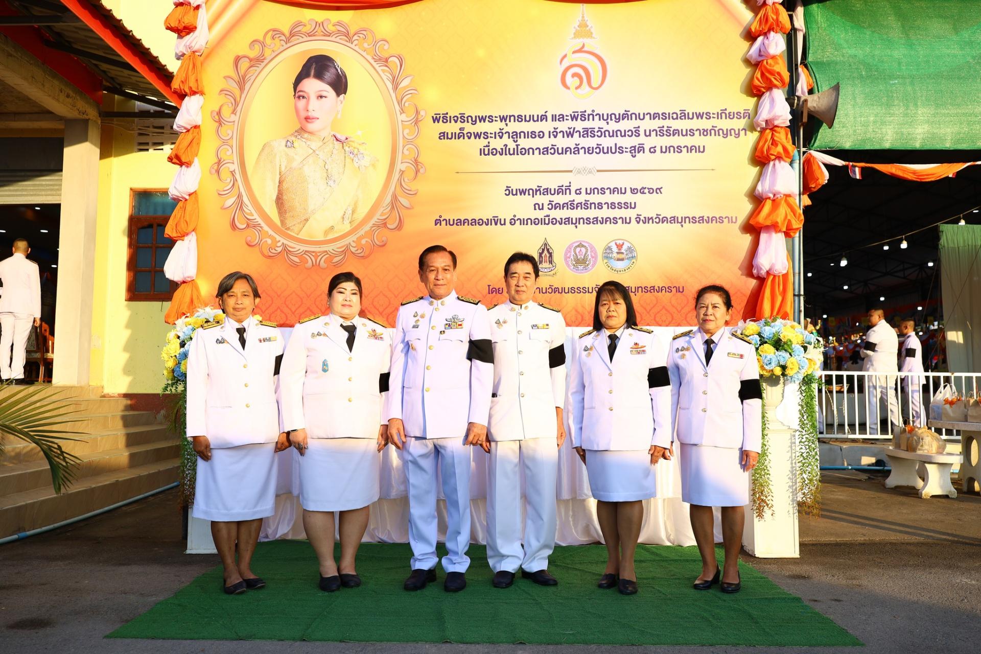 ร่วมพิธีทำบุญตักบาตร และพิธีเจริญพระพุทธมนต์เฉลิมพระเกียรติ เนื่องในโอกาสวันคล้ายวันประสูติ สมเด็จพระเจ้าลูกเธอ เจ้าฟ้าสิริวัณณวรี นารีรัตนราชกัญญา 8 มกราคม