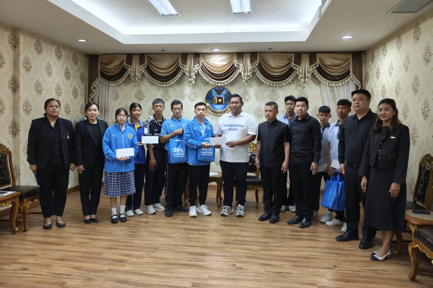 เป็นเกียรติร่วมกับนายชยชัย แสงอินทร์ ท่านผู้ว่าราชการจังหวัดสมุทรสงคราม ในการมอบโอวาทและขวัญกำลังใจแก่นักกีฬาตัวแทนจังหวัดสมุทรสงคราม เนื่องในโอกาสเข้าร่วมการแข่งขันกีฬานักเรียนนักศึกษาแห่งชาติ ครั้งที่ 45 "ฅนบุรีรัมย์เกมส์" ณ ห้องรับรองผู้ว่าราชการจังหวัดสมุทรสงคราม