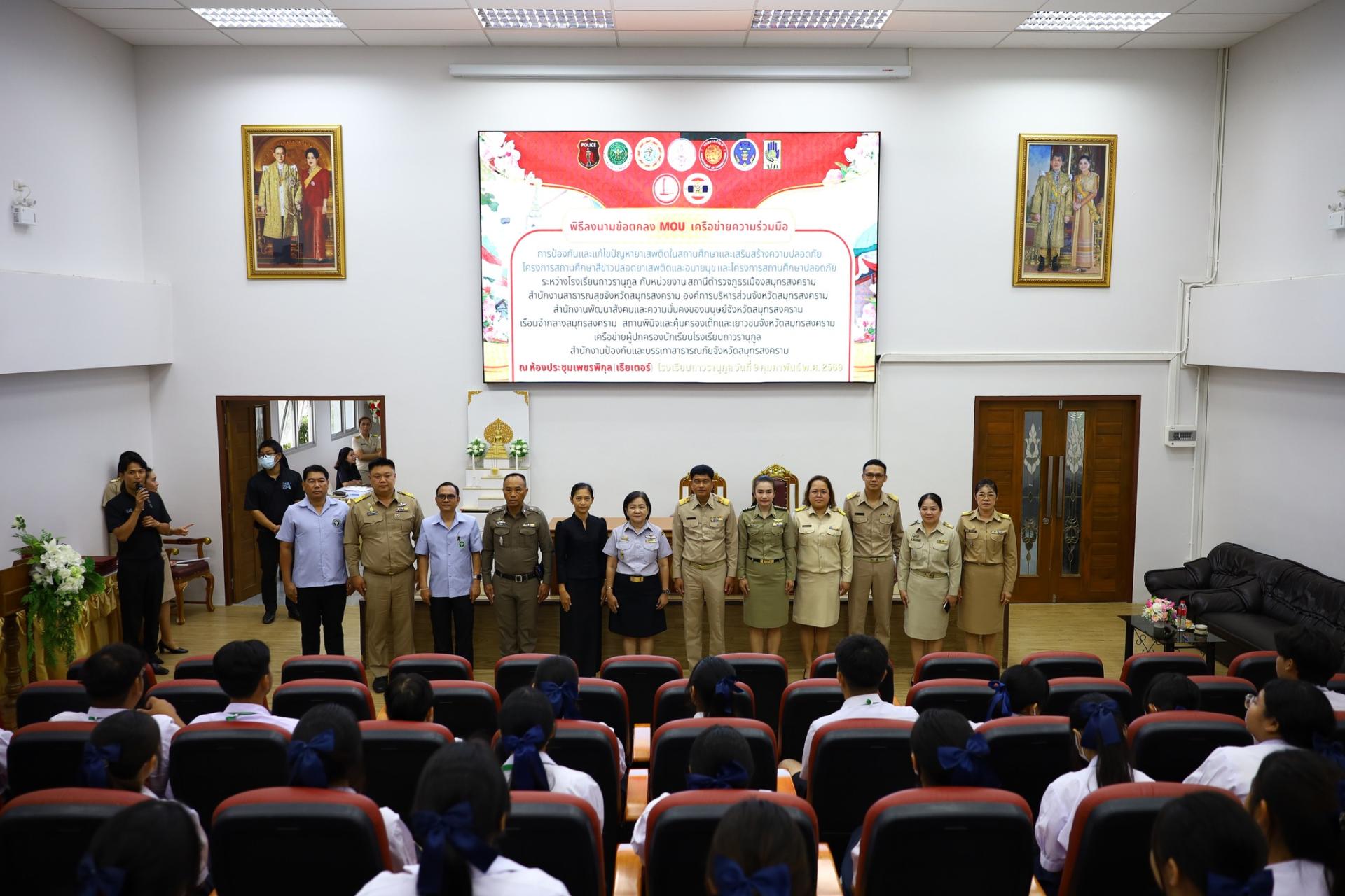 ร่วมพิธีลงนามข้อตกลง (MOU) เครือข่ายความร่วมมือ การป้องกันและแก้ไขปัญหายาเสพติดในสถานศึกษาและเสริมสร้างความปลอดภัย โครงการสถานศึกษาสีขาวปลอดยาเสพติดและอบายมุข และโครงการสถานศึกษาปลอดภัย ณ ห้องเธียร์เตอร์ โรงเรียนถาวรานุกูล