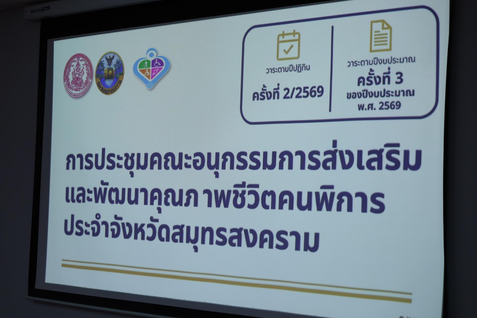 ร่วมการประชุมคณะอนุกรรมการส่งเสริม และพัฒนาคุณภาพชีวิตคนพิการ ประจำจังหวัดสมุทรสงคราม ครั้งที่ 2/2569 โดยมีนายรนัสถ์ชัย พุ่มเจริญ รองผู้ว่าราชการจังหวัดสมุทรสงคราม เป็นประธานการประชุม ณ ห้องประชุมบางคนที ชั้น 3 ศาลากลางจังหวัดสมุทรสงคราม