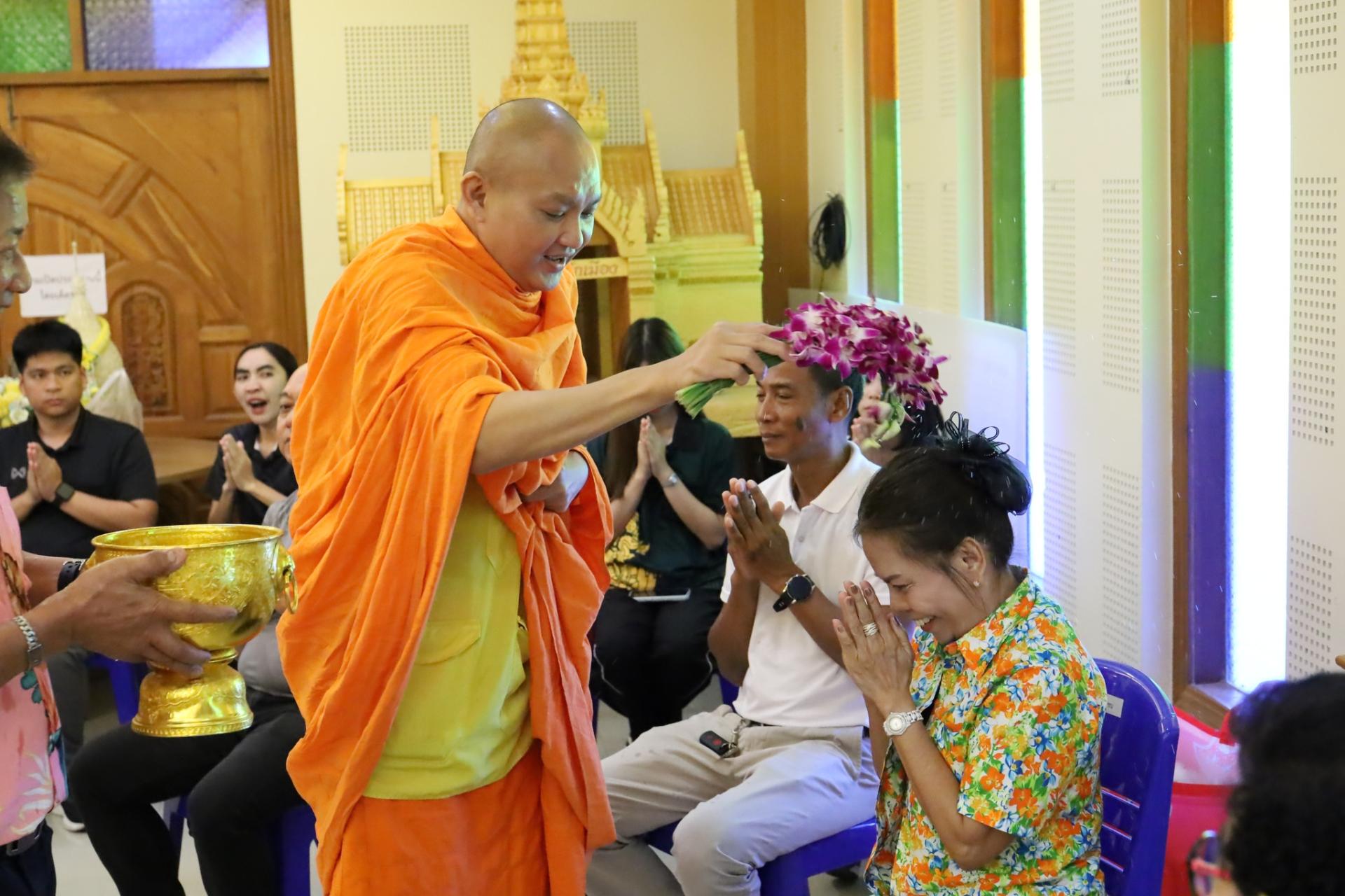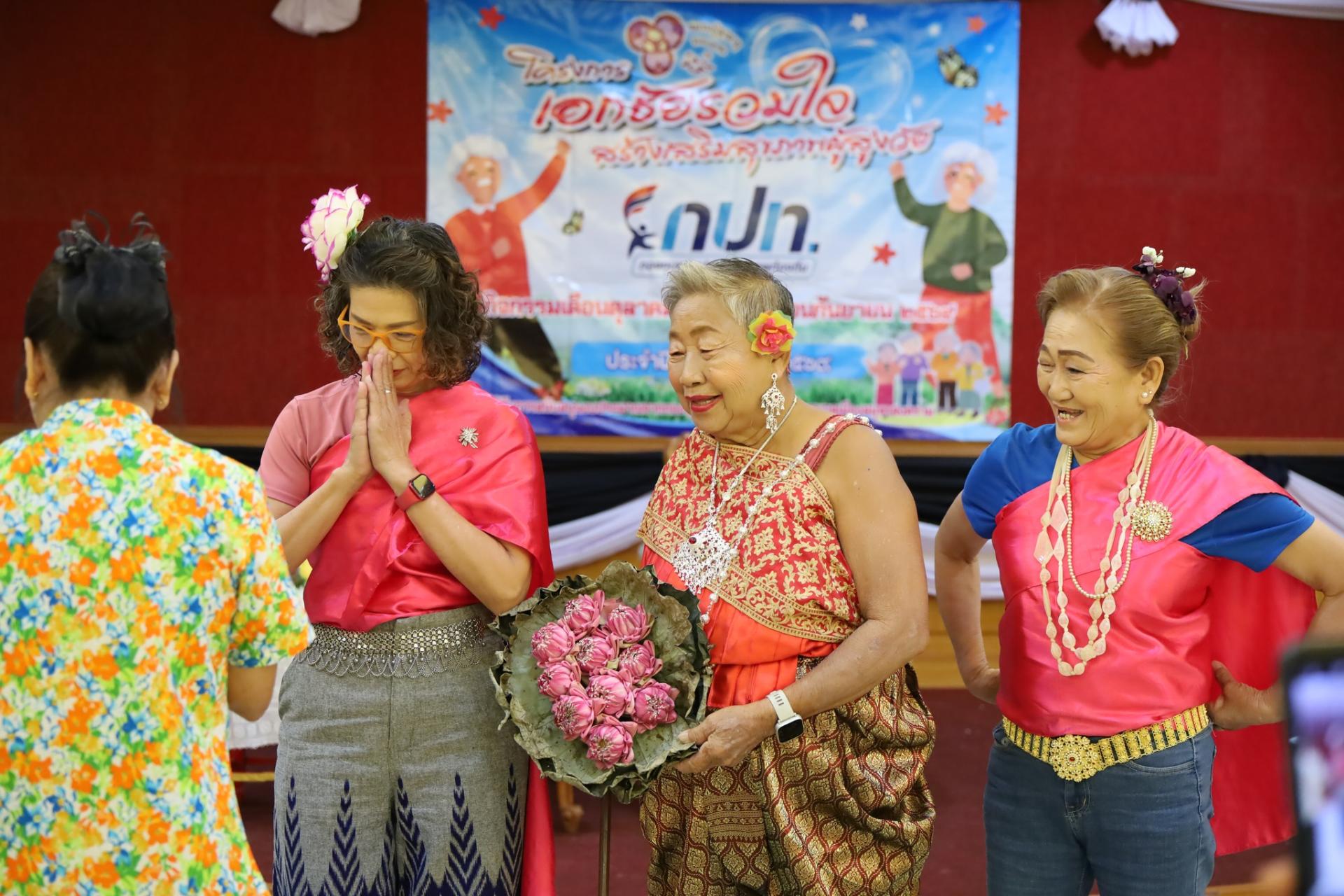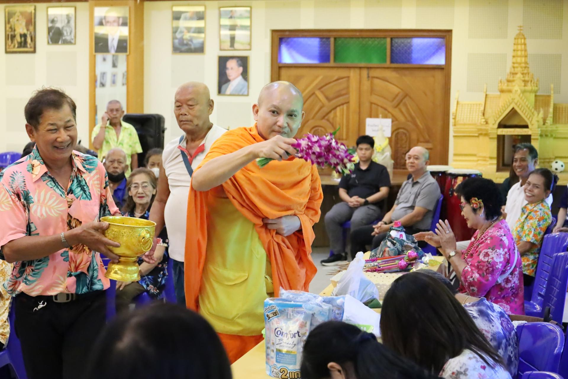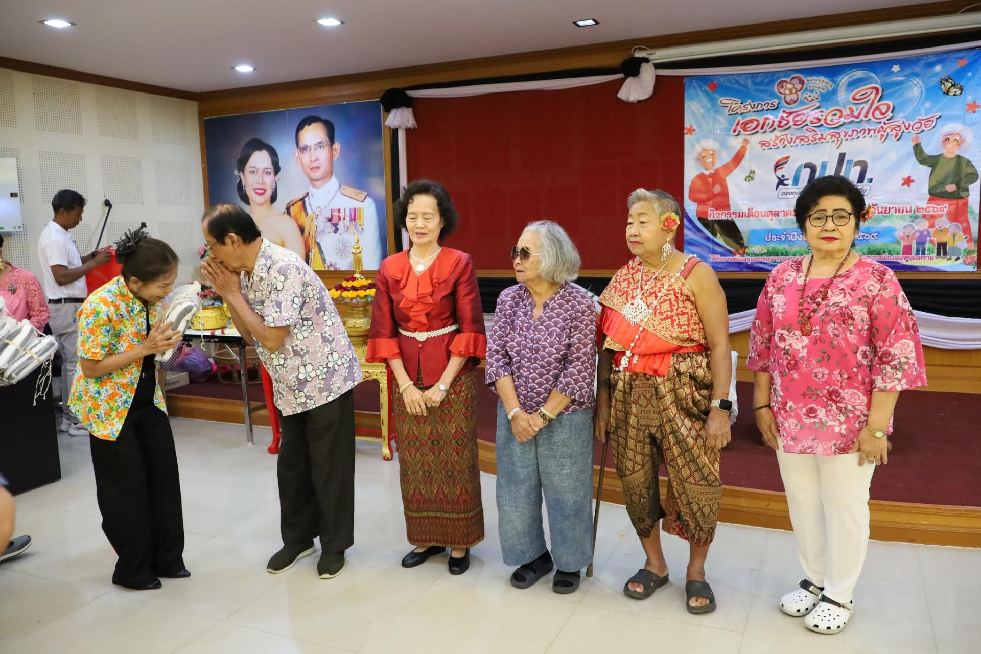 ร่วมรดน้ำขอพรจากผู้สูงอายุ และกล่าวอวยพรผู้สูงอายุ ในโครงการชุมชนเอกชัยรวมใจ สร้างเสริมสุขภาพผู้สูงวัย ประจำปี 2569 ณ ห้องสมุทรสามัคคี อบจ.สมุทรสงคราม