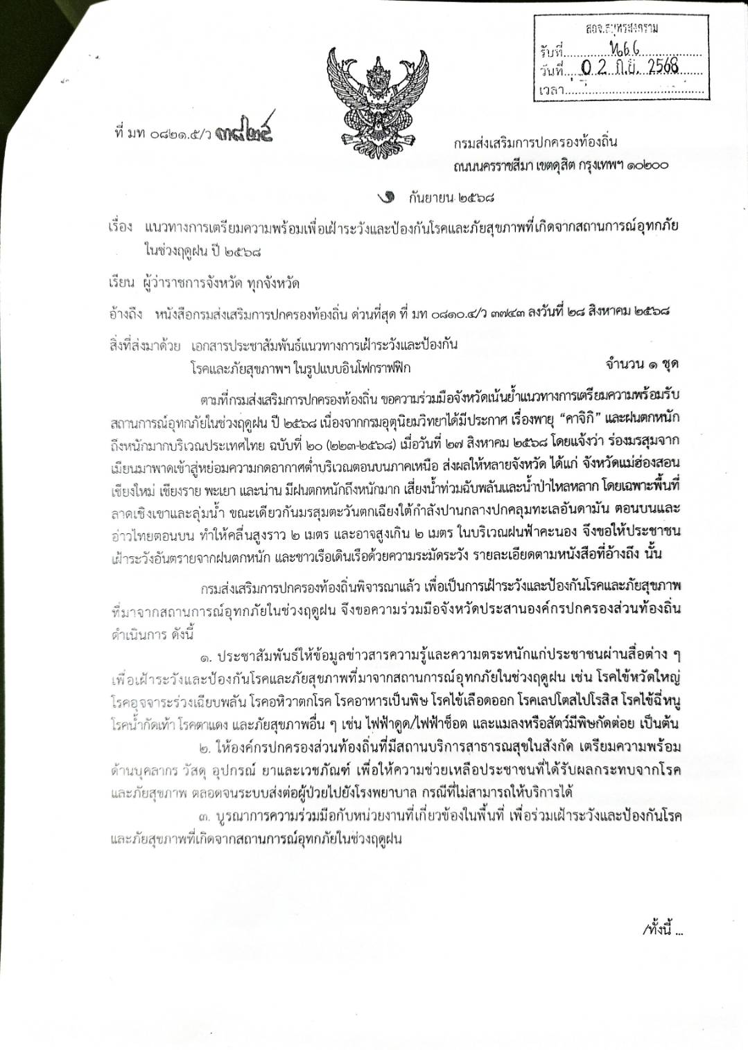 แนวทางการเตรียมความพร้อมเพื่อเฝ้าระวังและป้องกันโรคและภัยสุขภาพที่เกิดจากสถานการณ์อุทกภัยในช่วงฤดูฝน ปี 2568