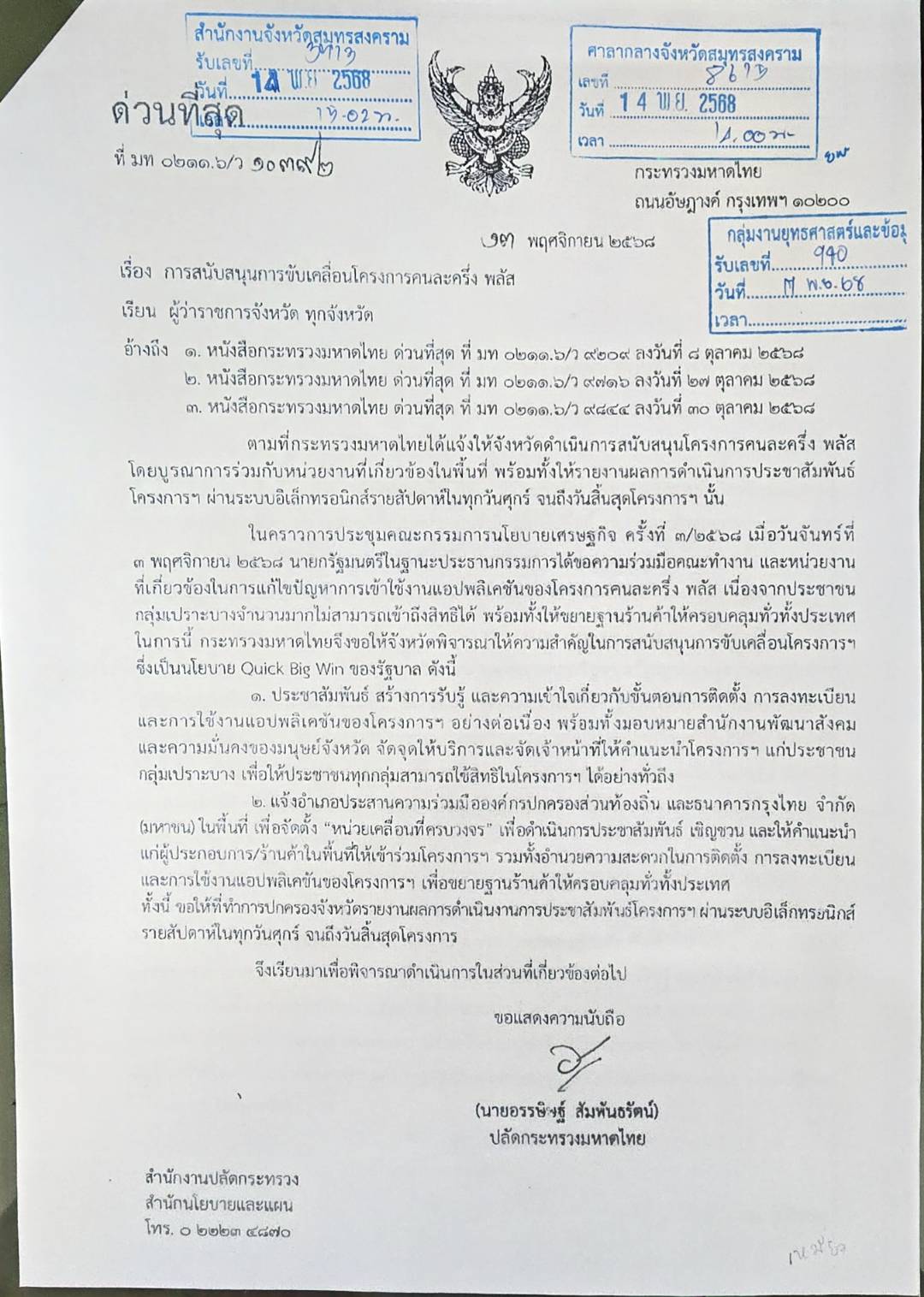 ประชาสัมพันธ์การสนับสนุนการขับเคลื่อนโครงการคนละครึ่ง พลัส