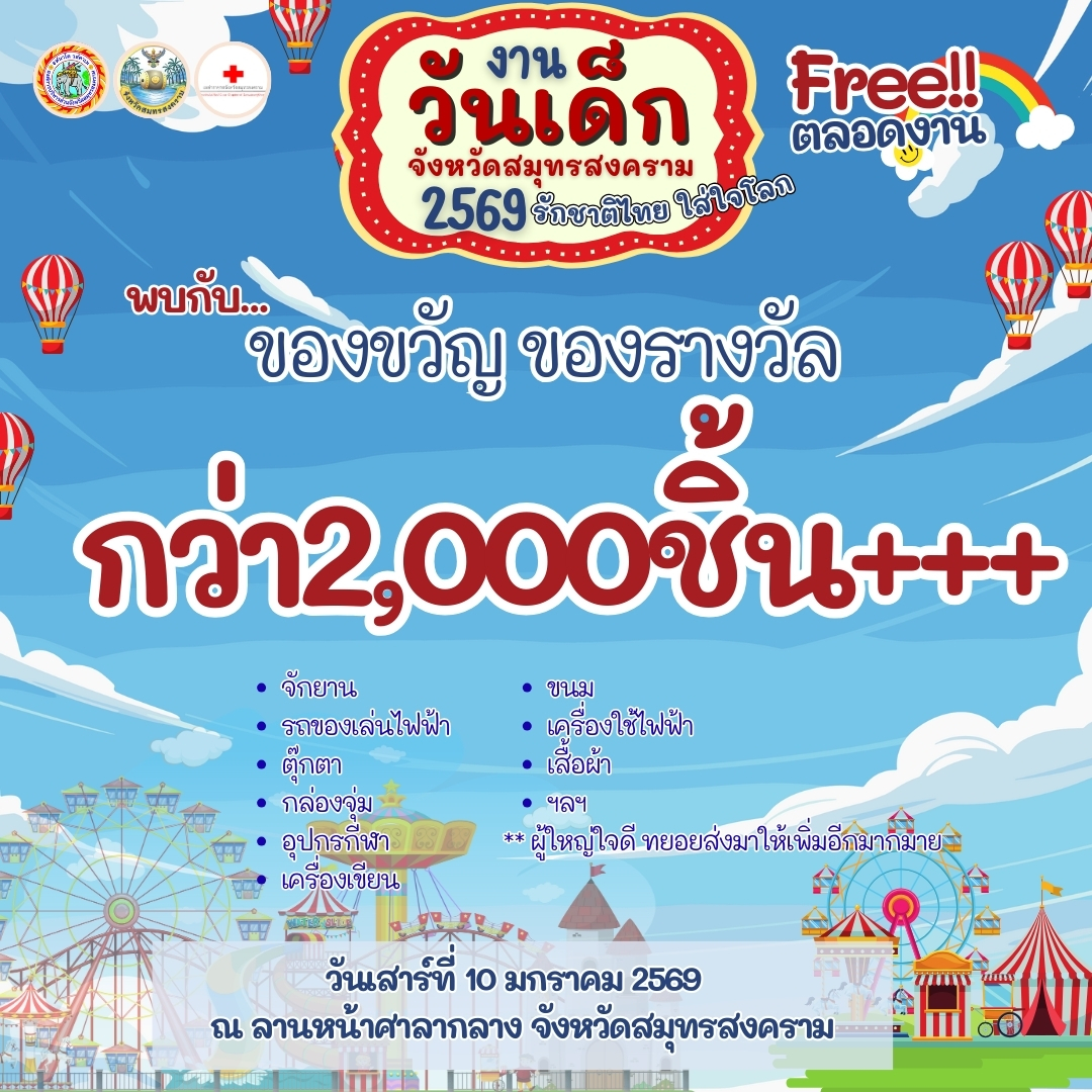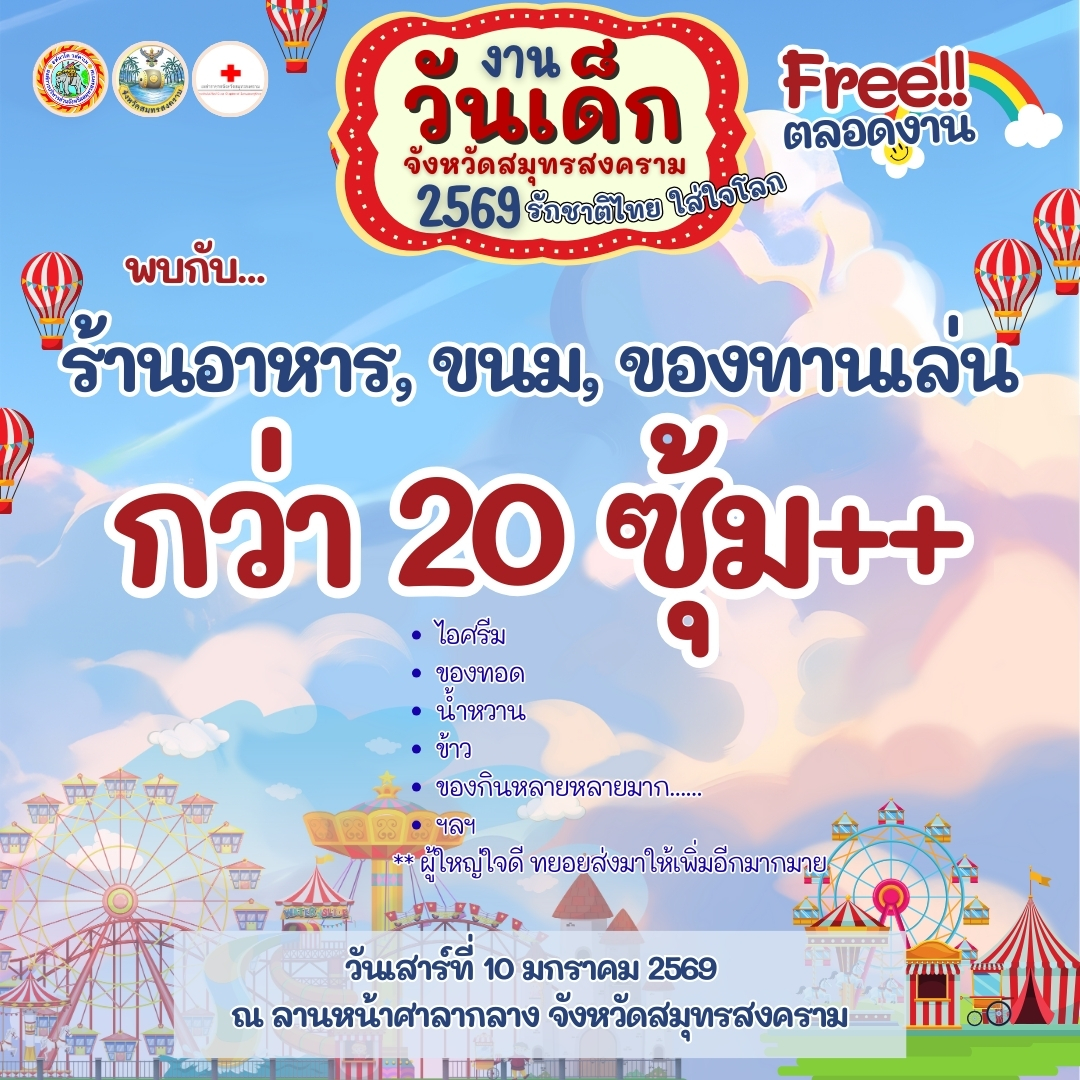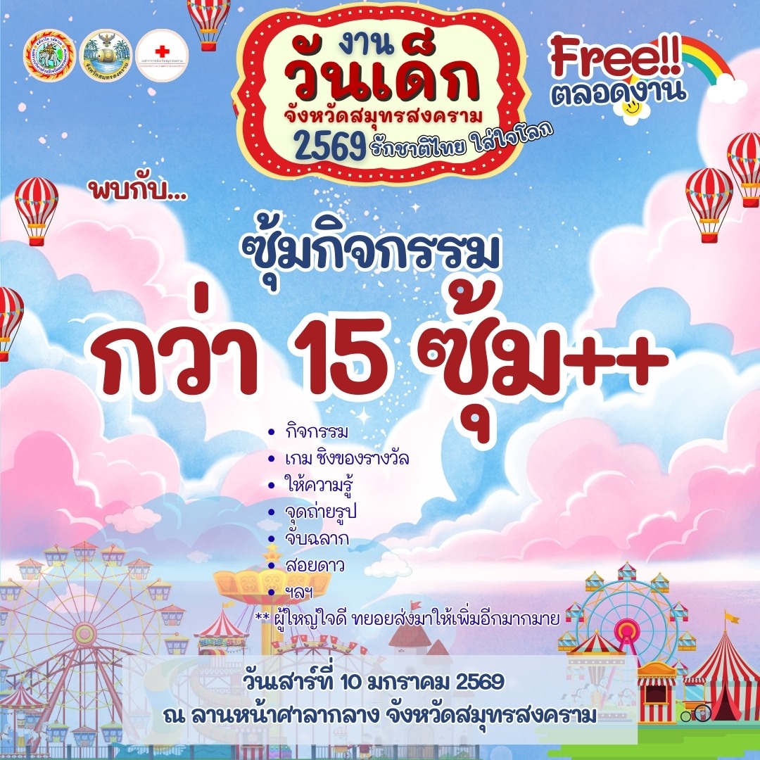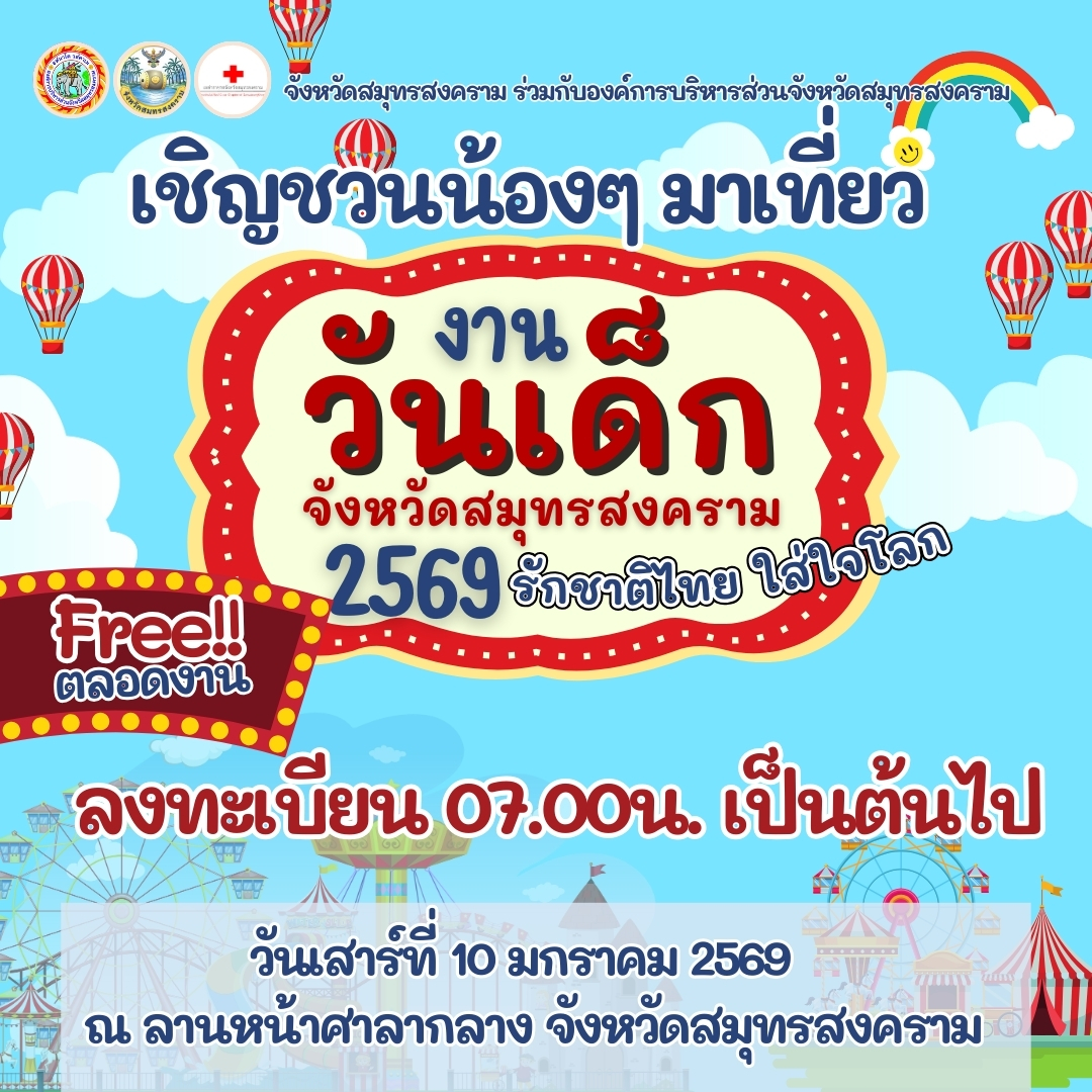 แล้วพบกัน งานวันเด็กแห่งชาติ วันเสาร์ที่ 10 ม.ค. 69 ณ ลานหน้าศาลากลางจังหวัดสมุทรสงคราม