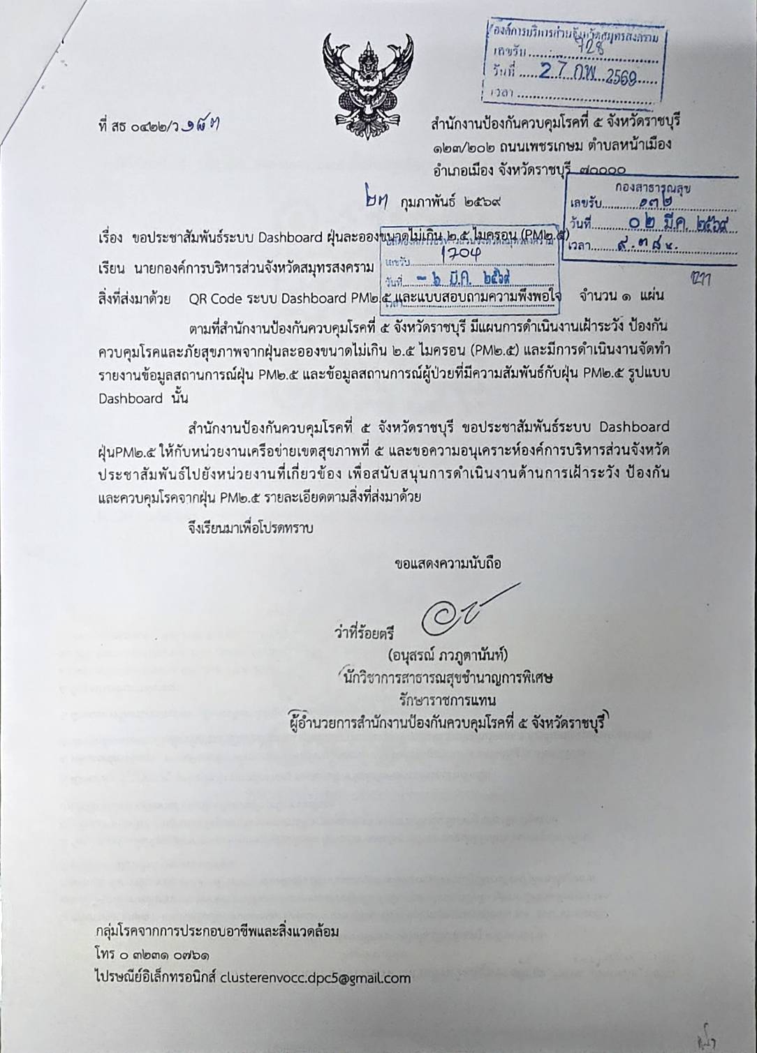 ประชาสัมพันธ์ระบบ Dashboard ฝุ่นละอองขนาดไม่เกิน ๒.๕ ไมครอน (PM๒.๕)
