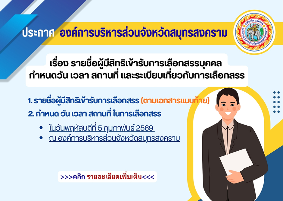 องค์การบริหารส่วนจังหวัดสมุทรสงคราม ยินดีต้อนรับ