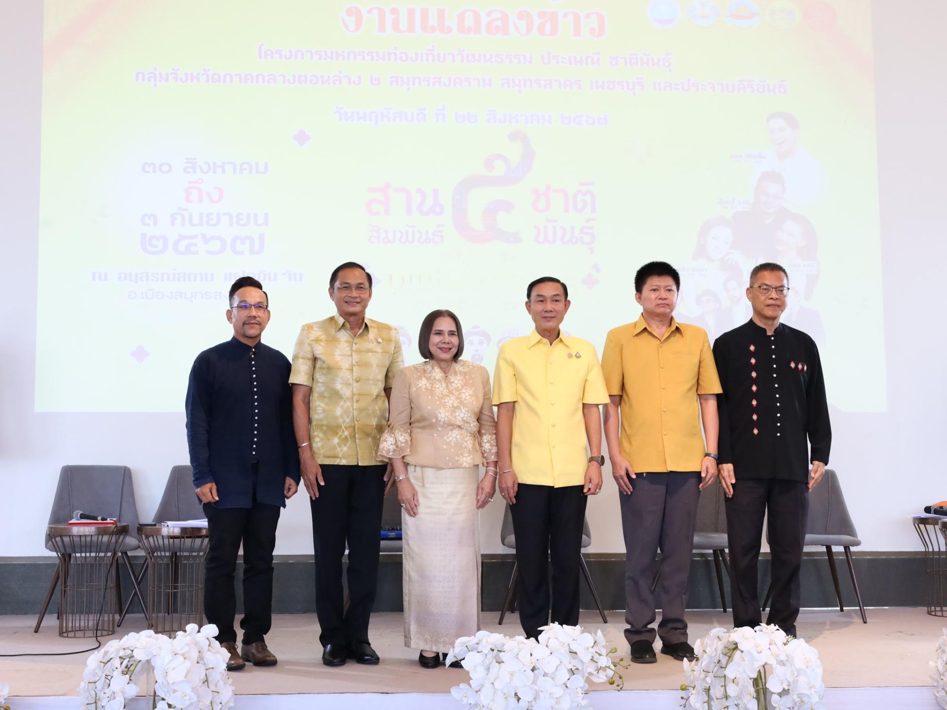 22 สิงหาคม 2567 อบจ.สมุทรสงคราม โดยนางสาวกาญจน์สุดา ปานะสุทธะ นายกอบจ.สมุทรสงคราม ร่วมแถลงข่าว โครงการมหกรรมท่องเที่ยววัฒนธรรม ประเพณี ชาติพันธุ์ กลุ่มจังหวัดภาคกลางตอนล่าง 2 "สานสัมพันธุ์ 5 ชาติพันธุ์ เพชรสมุทรคีรี" โดยมีนายศิริศักดิ์ ศิริมังคะลา ผู้ว่าราชการจังหวัด นำแถลงข่าว ร่วมด้วย ท่องเที่ยวและกีฬาจังหวัด, วัฒนธรรมจังหวัด, นายอำเภอเมืองฯ และนายกอบจ.สมุทรสงคราม มีนายสราวุธ สุวรรณน้อย เลขานุการนายกอบจ. ร่วมฟังการแถลงข่าว ณ ห้องประชุมใหญ่ริมน้ำ โรงแรมริเวอร์ตัน อ.เมืองฯ จ.สมุทรสงคราม