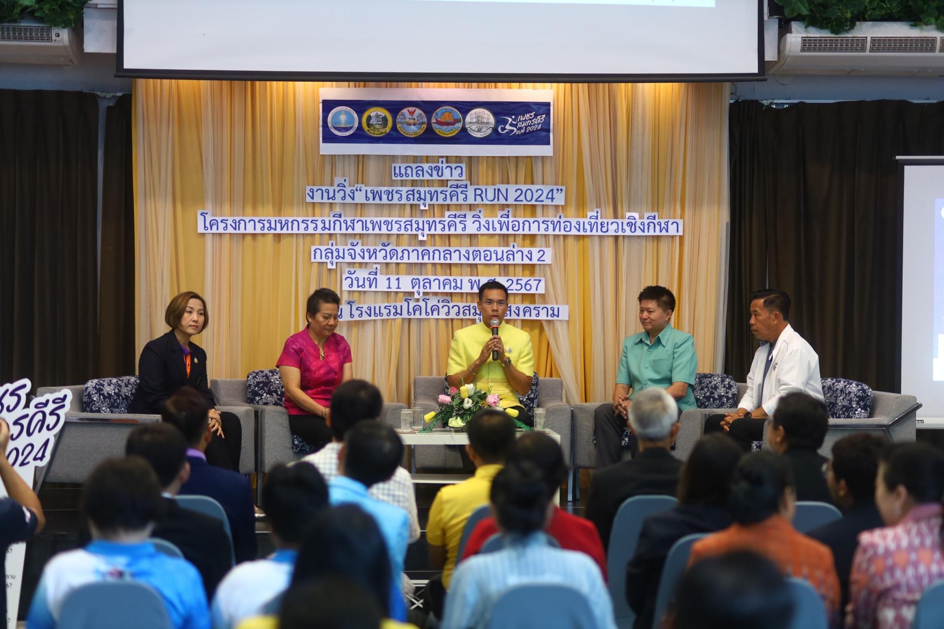 11 ตุลาคม 2567 อบจ.สมุทรสงคราม โดยการนำของ นางสาวกาญจน์สุดา ปานะสุทธะ นายกอบจ.สมุทรสงคราม มอบหมายให้ นางนิลุบล เดชเกตุ ปลัด อบจ. พร้อมด้วย นางสุทัสสี ทับทิมทอง ผอ.กองการเจ้าหน้าที่ ร่วมงานแถลงข่าว โครงการมหกรรมกีฬาเพชรสมุทรคีรี วิ่งเพื่อการท่องเที่ยวเชิงกีฬา กลุ่มจังหวัดภาคกลางตอนล่าง 2 "เพชรสมุทรคีรี RUN" โดยมีนายกรกฎ วงษ์สุวรรณ รองผู้ว่าราชการจังหวัด รักษาราชการแทนผู้ว่าราชการจังหวัดสมุทรสงคราม เป็นประธานงานแถลงข่าว ณ โรงแรมโคโค่วิว อ.เมืองฯ จ.สมุทรสงคราม