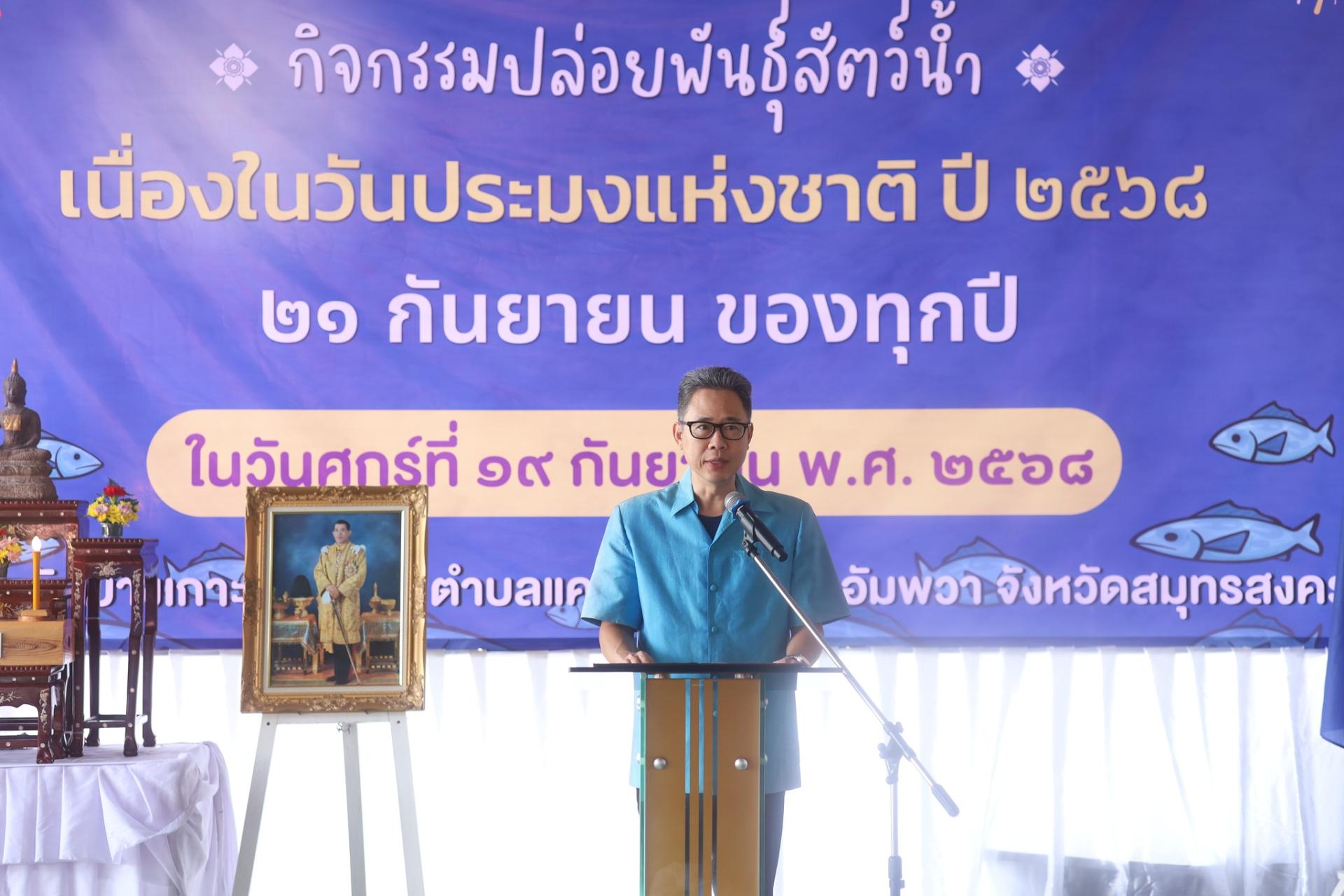 19 กันยายน 2568นายเจษฎา ญาณประภาศิรินายก อบจ.สมุทรสงครามมอบหมายให้คณะผู้บริหาร ร่วมด้วยสมาชิกสภาองค์การฯ ร่วมกิจกรรมปล่อยพันธุ์สัตว์น้ำ เนื่องในวันประมงแห่งชาติ 21 กันยายน 2568 ณ ท่าน้ำวัดบางเกาะเทพศักดิ์ ต.แควอ้อม อ.อัมพวา จ.สมุทรสงคราม