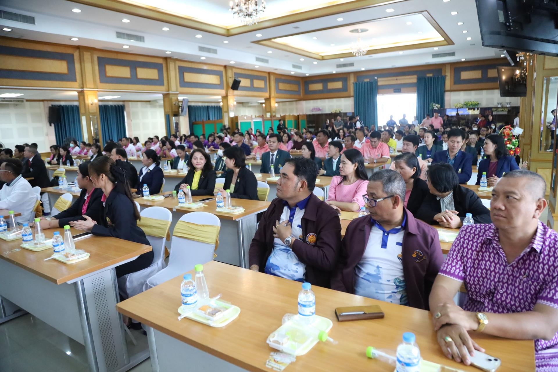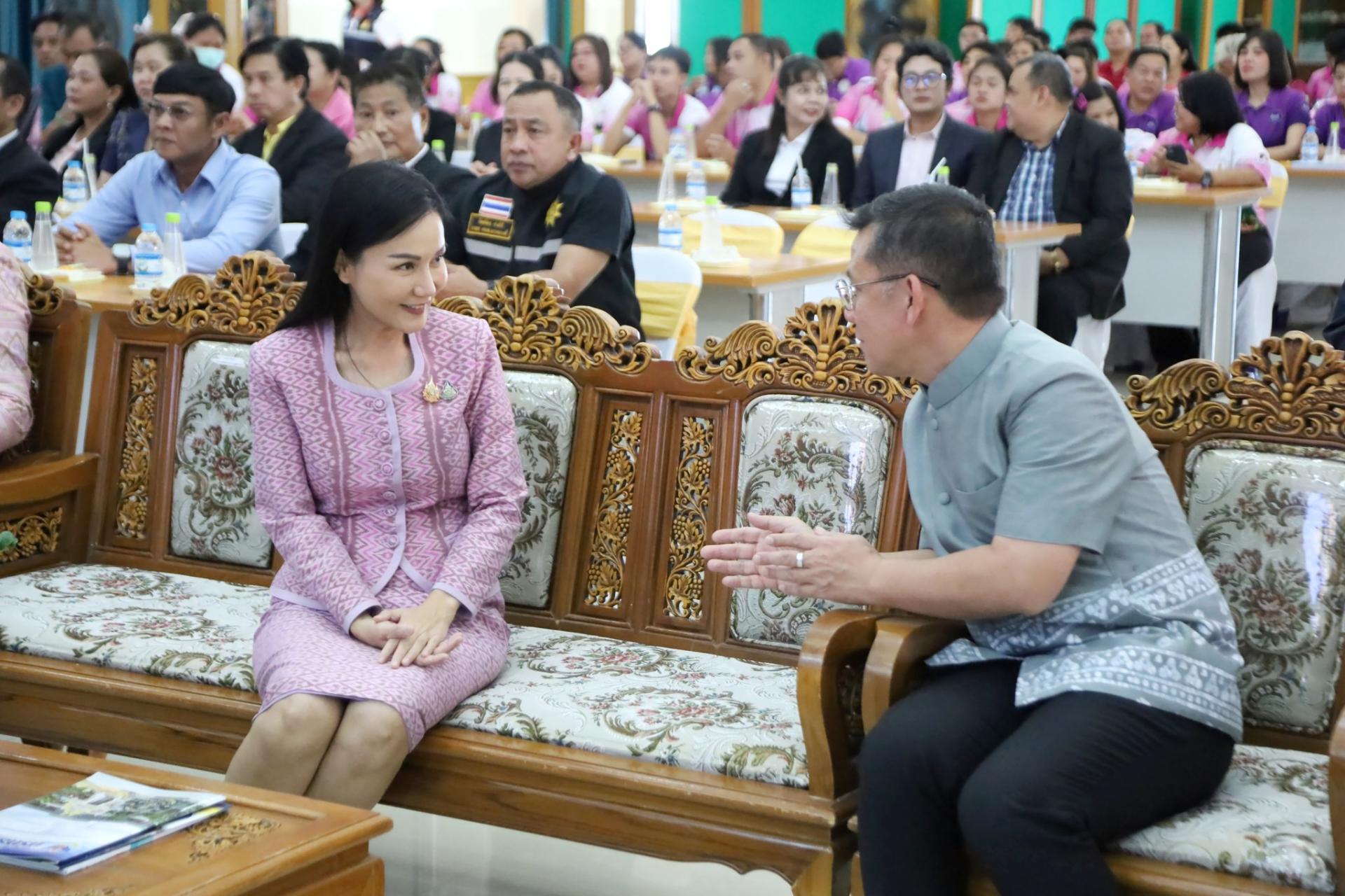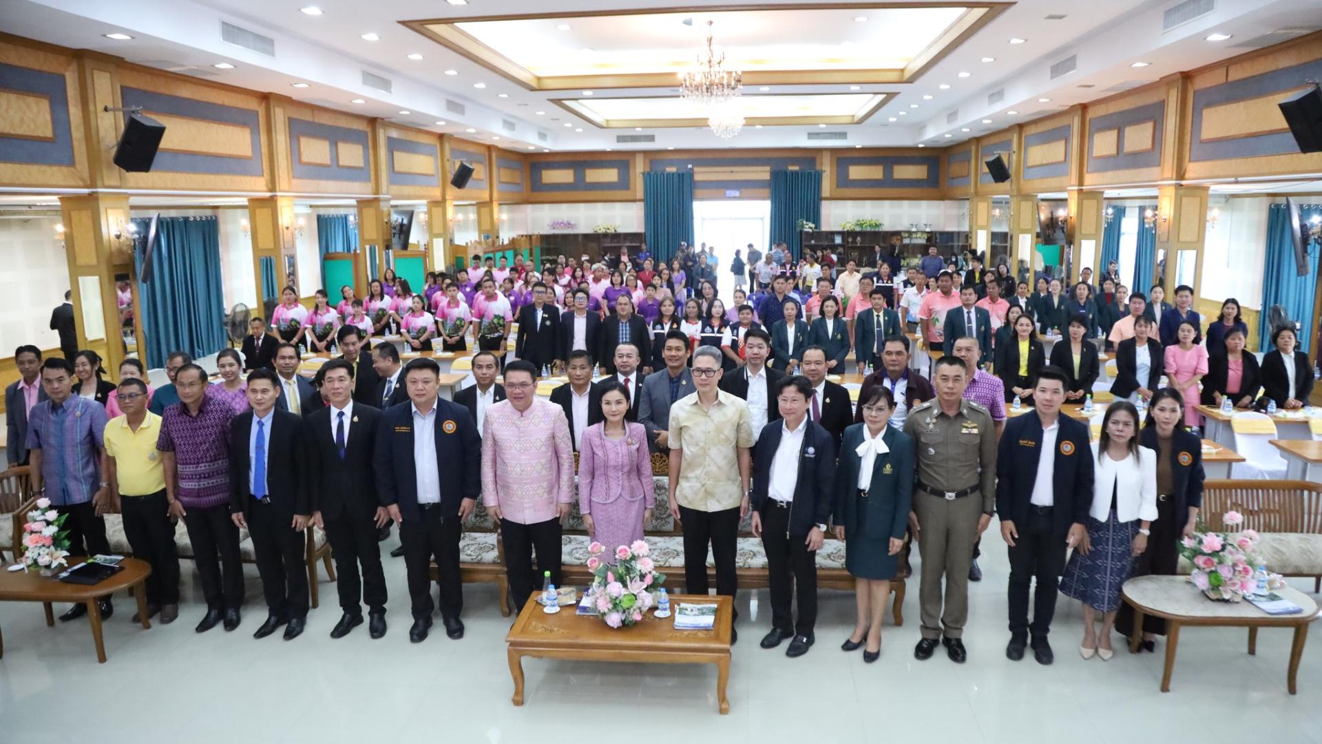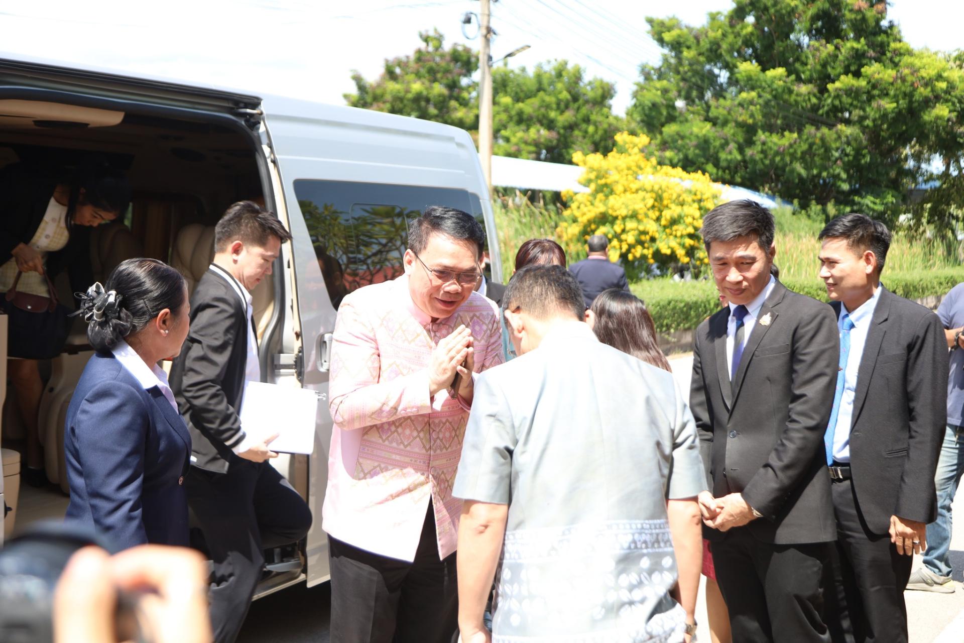 นำคณะผู้บริหาร สมาชิกสภาฯ และข้าราชการ ร่วมต้อนรับ ศาสตราจารย์ ดร.นฤมล ภิญโญสินวัฒน์ รัฐมนตรีว่าการกระทรวงศึกษาธิการ, นายพิเชฐ โพธิ์ภักดี เลขาธิการคณะกรรมการการศึกษาขั้นพื้นฐาน(กพฐ.) และคณะฯ