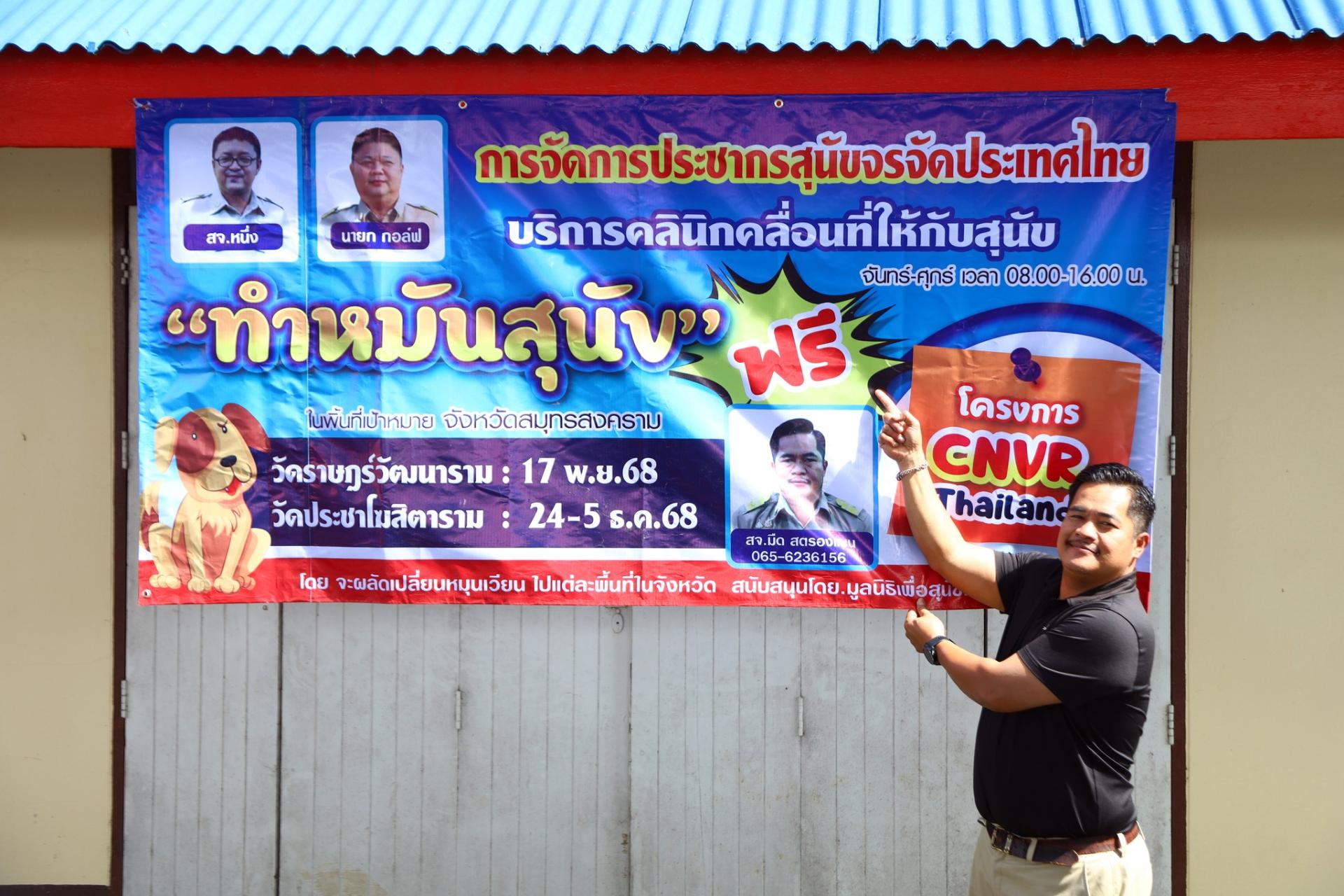 จัดโครงการ "การจัดการประชากรสุนัขจรจัดประเทศไทย" (CNVR-Thailand) ซึ่งตอนนี้ได้ตั้งศูนย์ทำหมันสุนัขที่ วัดประชาโฆษิตาราม ต.ปลายโพงพาง อ.อัมพวา