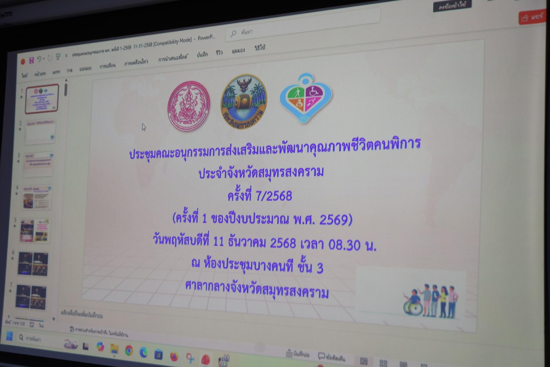 นายณัฏฐกิตติ์ เจียรนัย รองนายกองค์การฯ ร่วมด้วยนายธนัย พ้นภัย เลขานุการนายกฯ ในฐานะผู้ทรงคุณวุฒิ ร่วมการประชุมคณะอนุกรรมการส่งเสริมและพัฒนาคุณภาพชีวิตคนพิการประจำจังหวัดสมุทรสงคราม ครั้งที่ 7/2568 (ครั้งที่ 1 ประจำปีงบประมาณ พ.ศ. 2569) โดยมีนายชยชัย แสงอินทร์ ผู้ว่าราชการจังหวัดสมุทรสงคราม เป็นประธานการประชุม ณ ห้องประชุมบางคนที ชั้น 3 ศาลากลางจังหวัดสมุทรสงคราม
