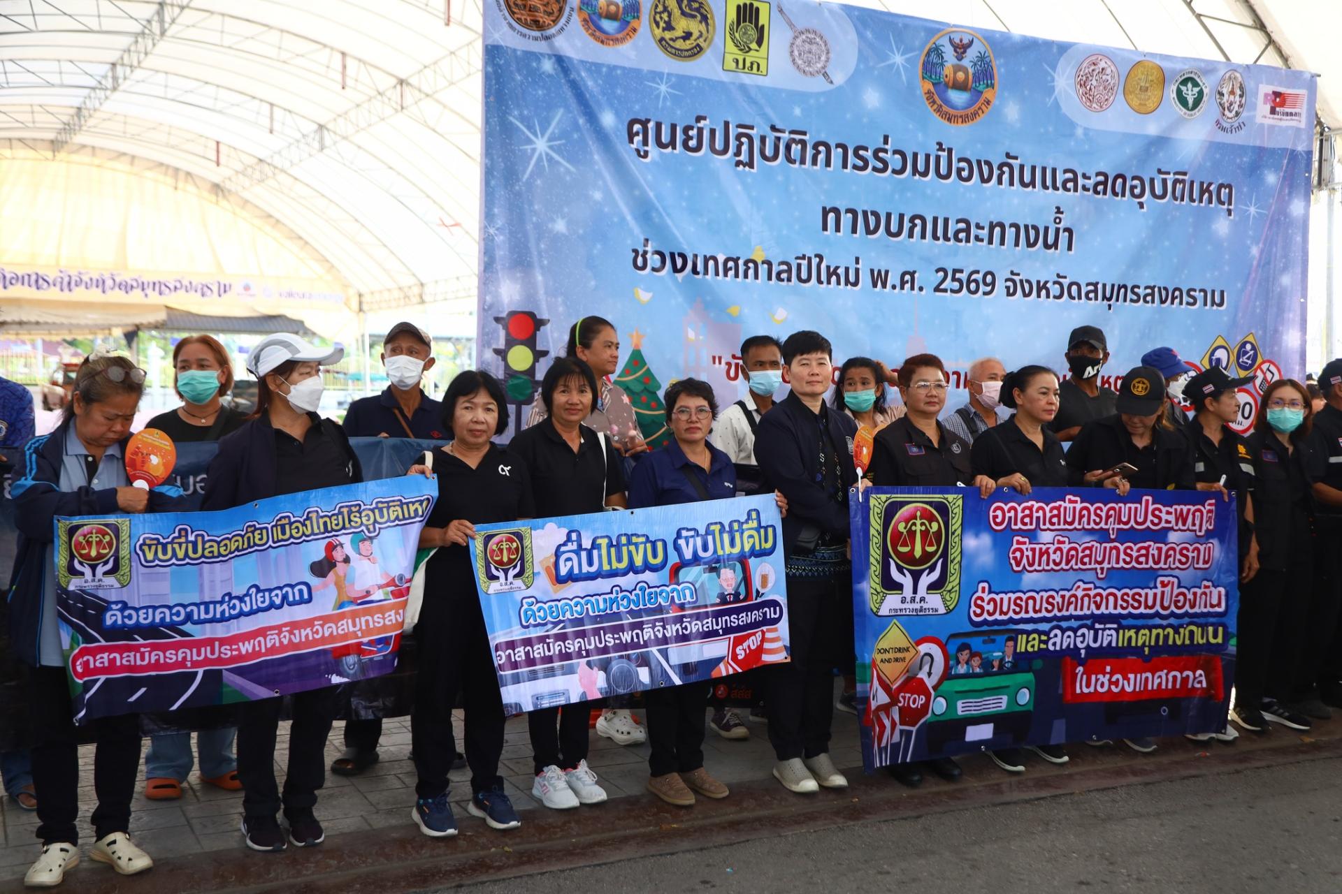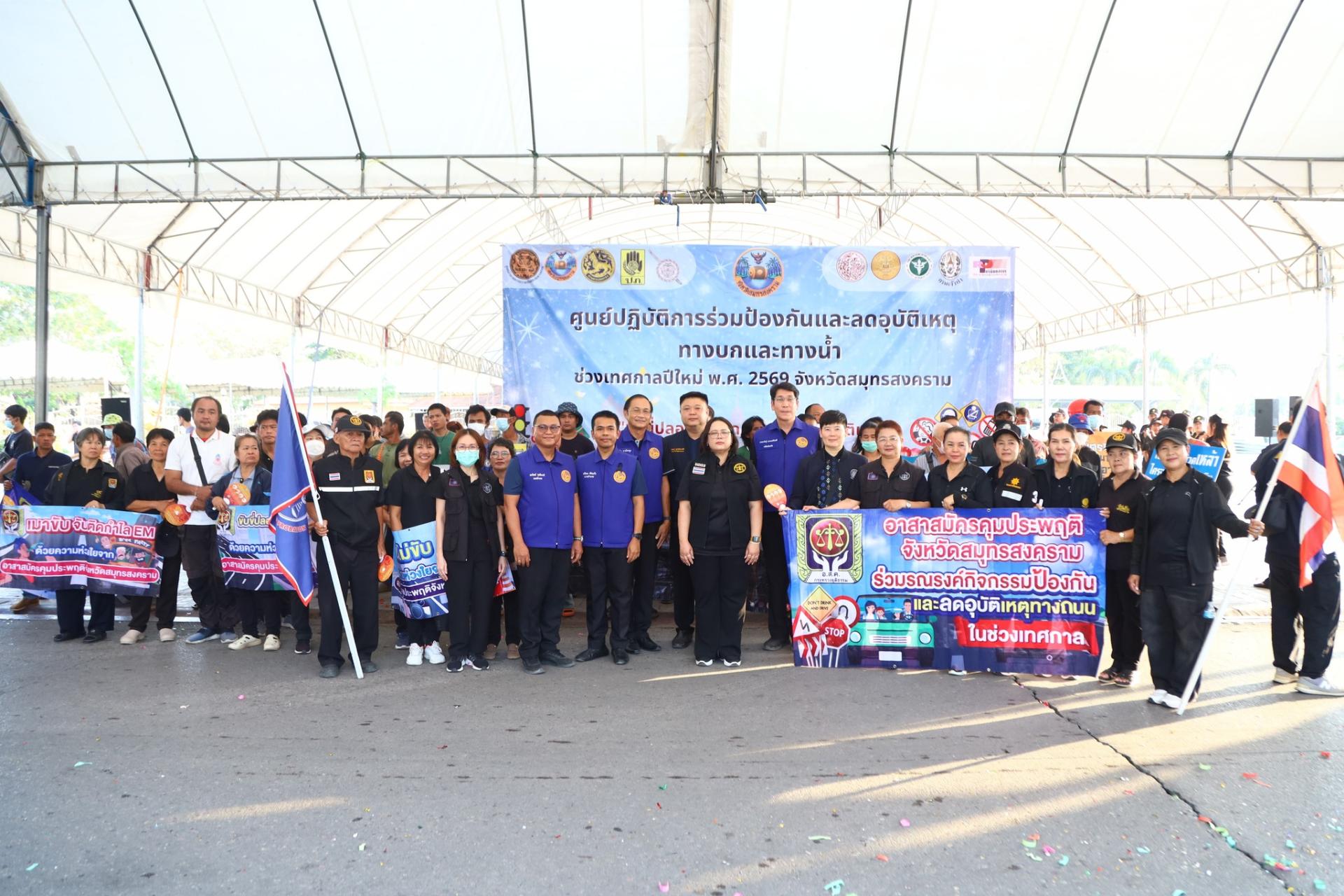 พร้อมผู้บริหาร และเจ้าหน้าที่ ร่วมพิธีเปิดศูนย์ปฏิบัติการร่วมป้องกันและลดอุบัติเหตุทางบกและทางน้ำ ช่วงเทศกาลปีใหม่ พ.ศ. 2569 จังหวัดสมุทรสงคราม และปล่อยขบวนยานพาหนะรณรงค์ฯ