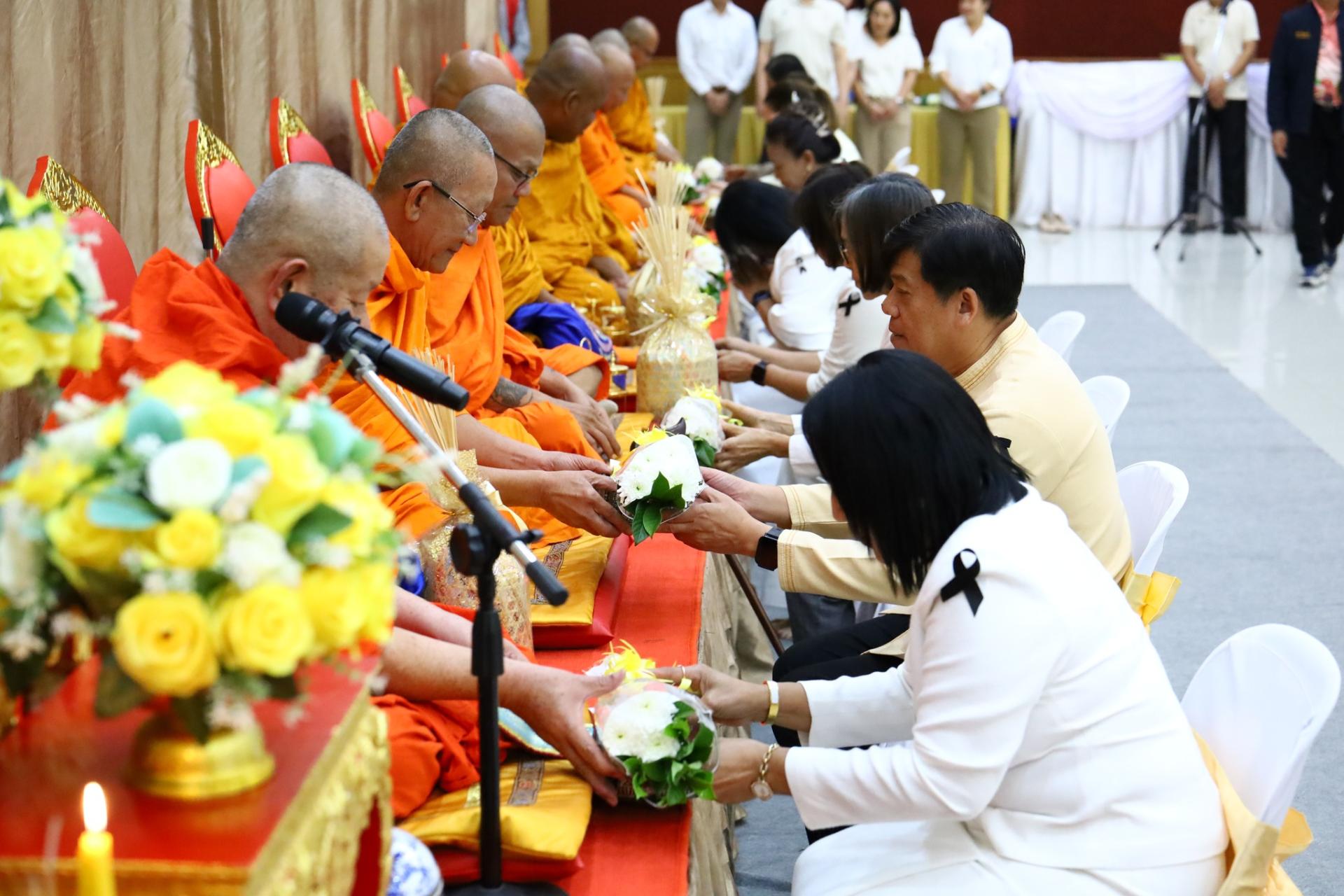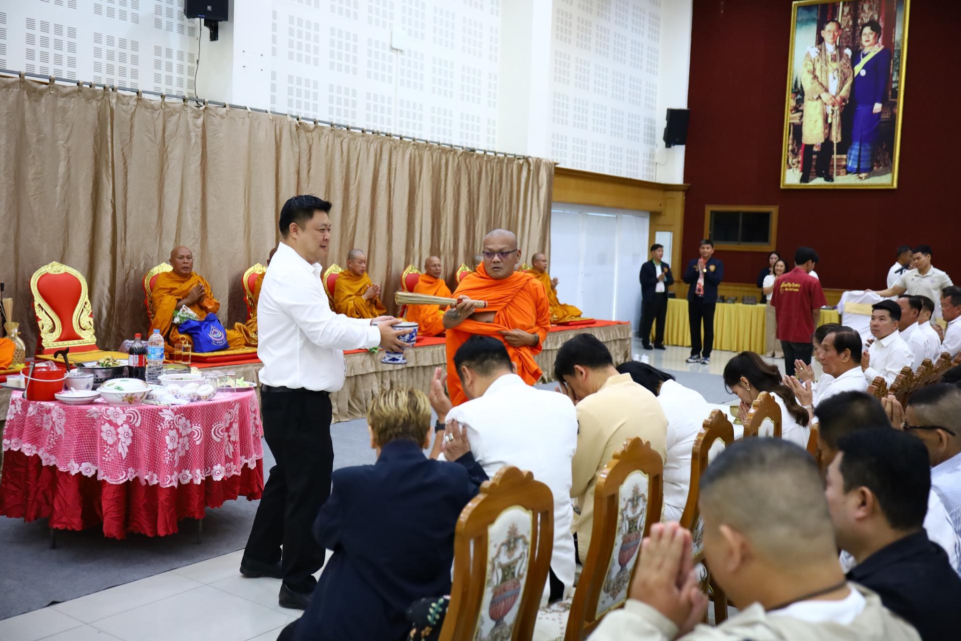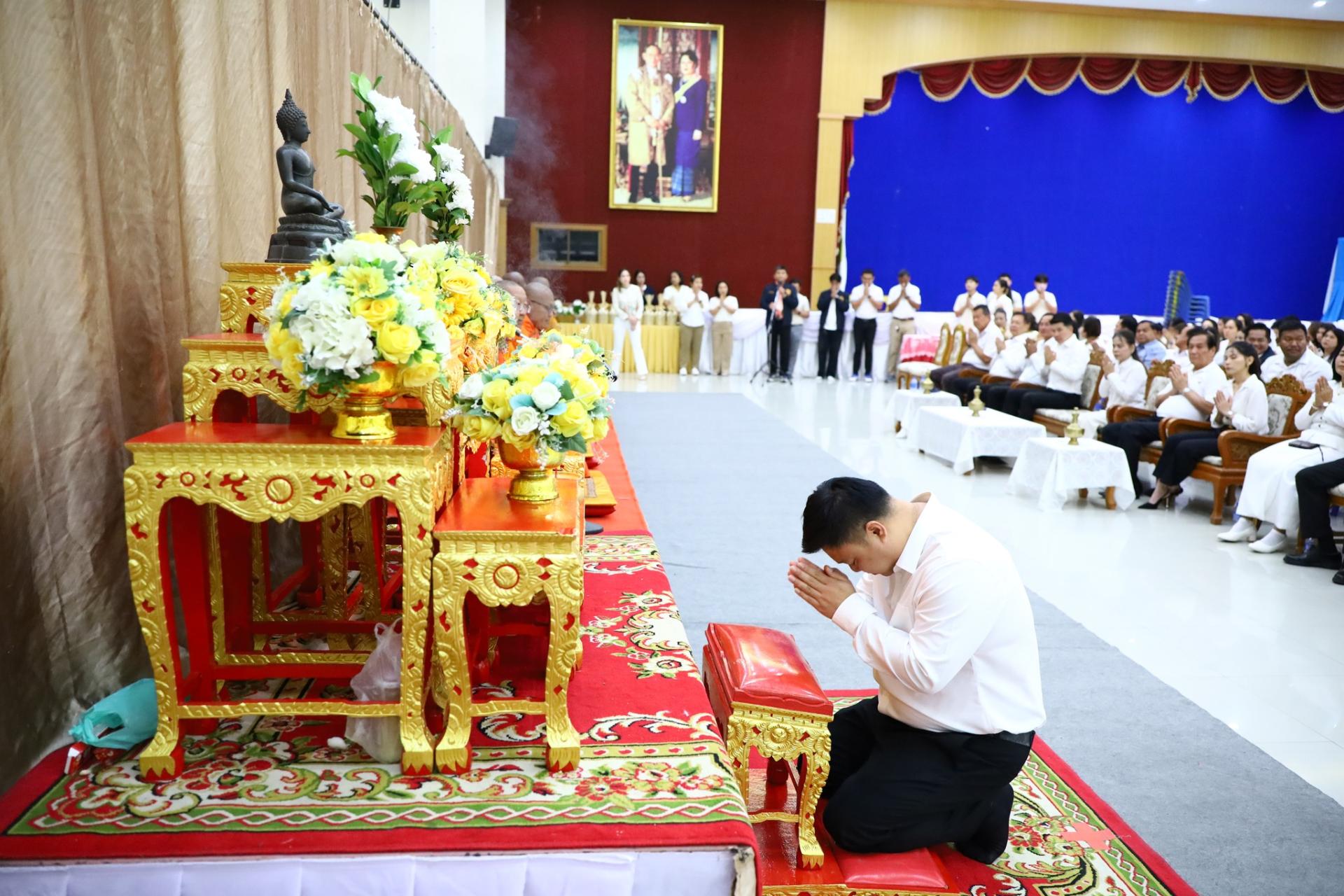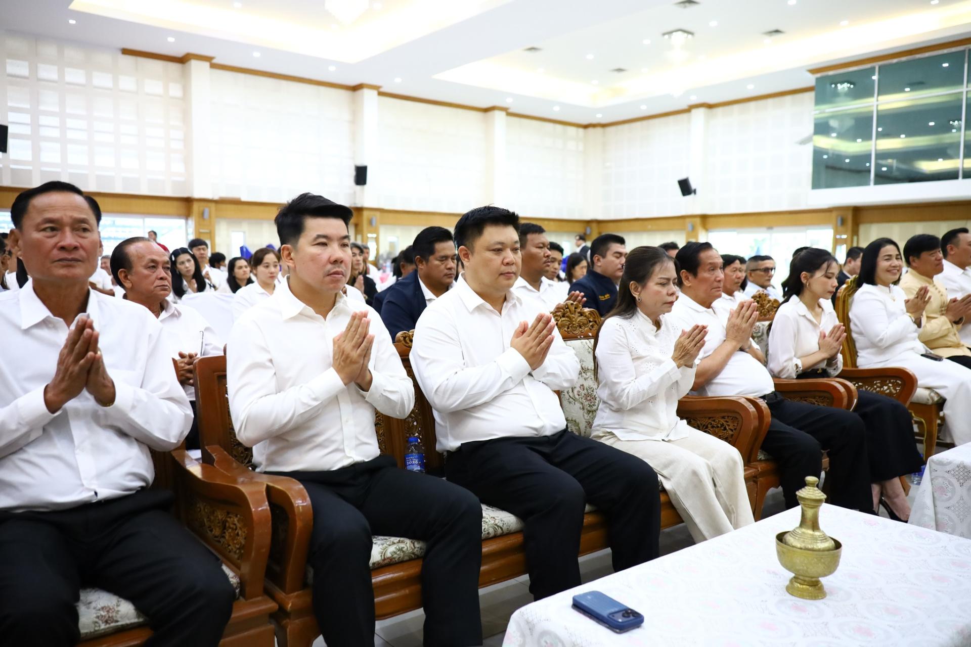 พร้อมคณะผู้บริหาร สมาชิกสภาฯ ข้าราชการ และพนักงาน ร่วมทำบุญ สวดมนต์ รับศีล รับพร ถวายภัตตาหารเพลแด่พระภิกษุสงฆ์ สักการะพระบรมรูป สมเด็จพระจุลจอมเกล้าเจ้าอยู่หัว และพระเจ้าบรมวงศ์เธอ กรมหลวงชุมพรเขตอุดมศักดิ์ ประจำอาคารสำนักงาน เพื่อความเป็นสิริมงคล เนื่องในเทศกาลขึ้นปีใหม่ พ.ศ. 2569 ณ อาคารสำนักงานองค์การบริหารส่วนจังหวัดสมุทรสงคราม