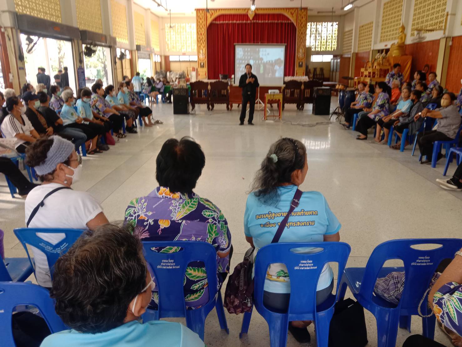 นายเจษฎา ญาณประภาศิริ นายก อบจ.สมุทรสงคราม มอบหมายให้คณะผู้บริหาร ร่วมเยี่ยมชมและมอบขวัญกำลังใจให้แก่ผู้เข้าร่วมโครงการ ชมรมผู้สูงอายุตำบลท้ายหาด วัฒนธรรมค้ำชูใจ ใส่ใจเรื่องสุขภาพ ณ วัดท้ายหาด ต.ท้ายหาด อ.เมืองฯ จ.สมุทรสงคราม