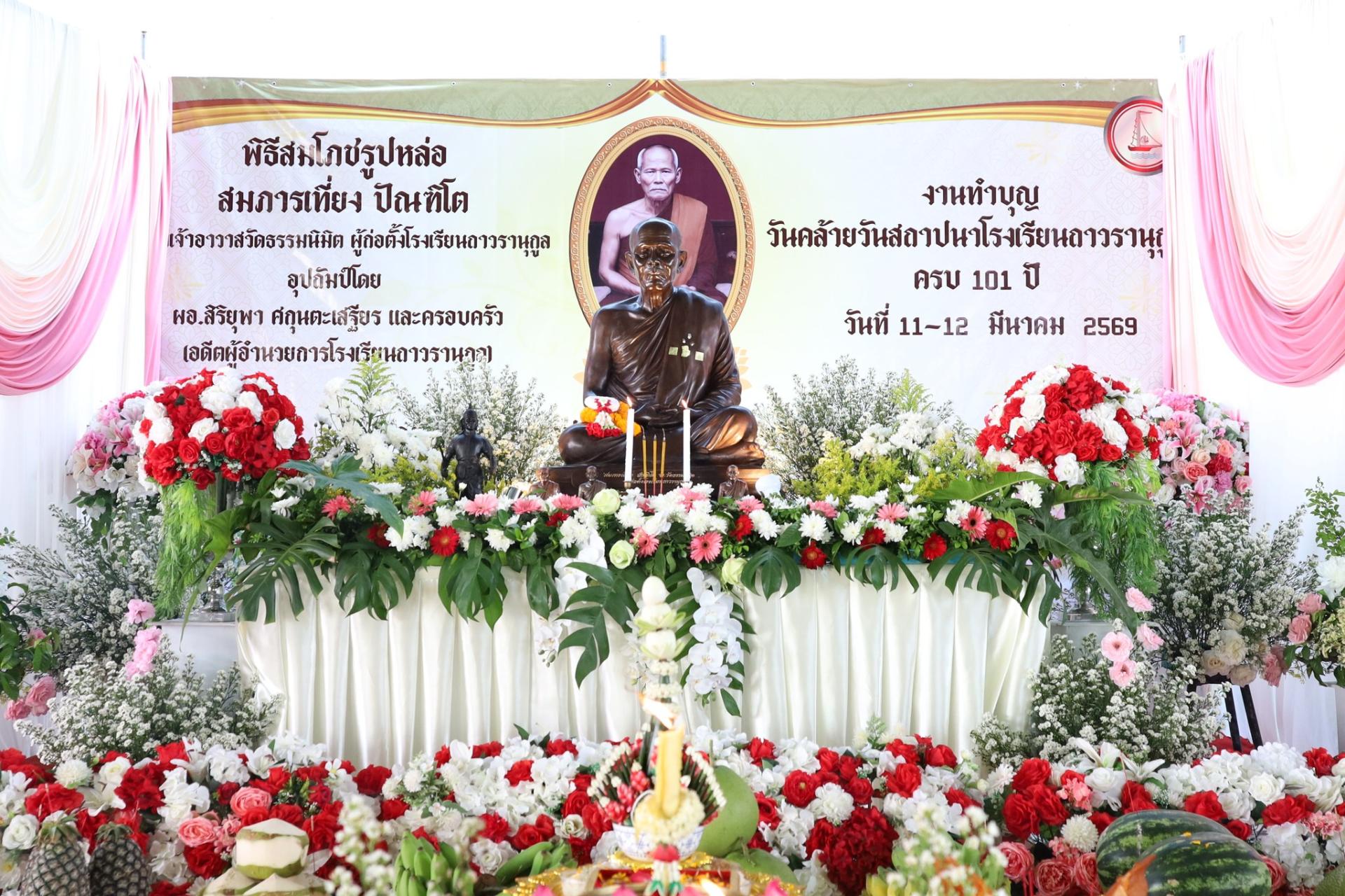 12 มีนาคม 2569นายเจษฎา ญาณประภาศิรินายก อบจ.สมุทรสงครามร่วมพิธีสมโภชรูปหล่อสมภารเที่ยง ปัณฑิโต และงานทำบุญ วันคล้ายวันสถาปนาโรงเรียนนถาวรานุกูล ครบ 101 ปี ณ ลานโดมอเนกประสงค์ โรงเรียนถาวรานุกูล