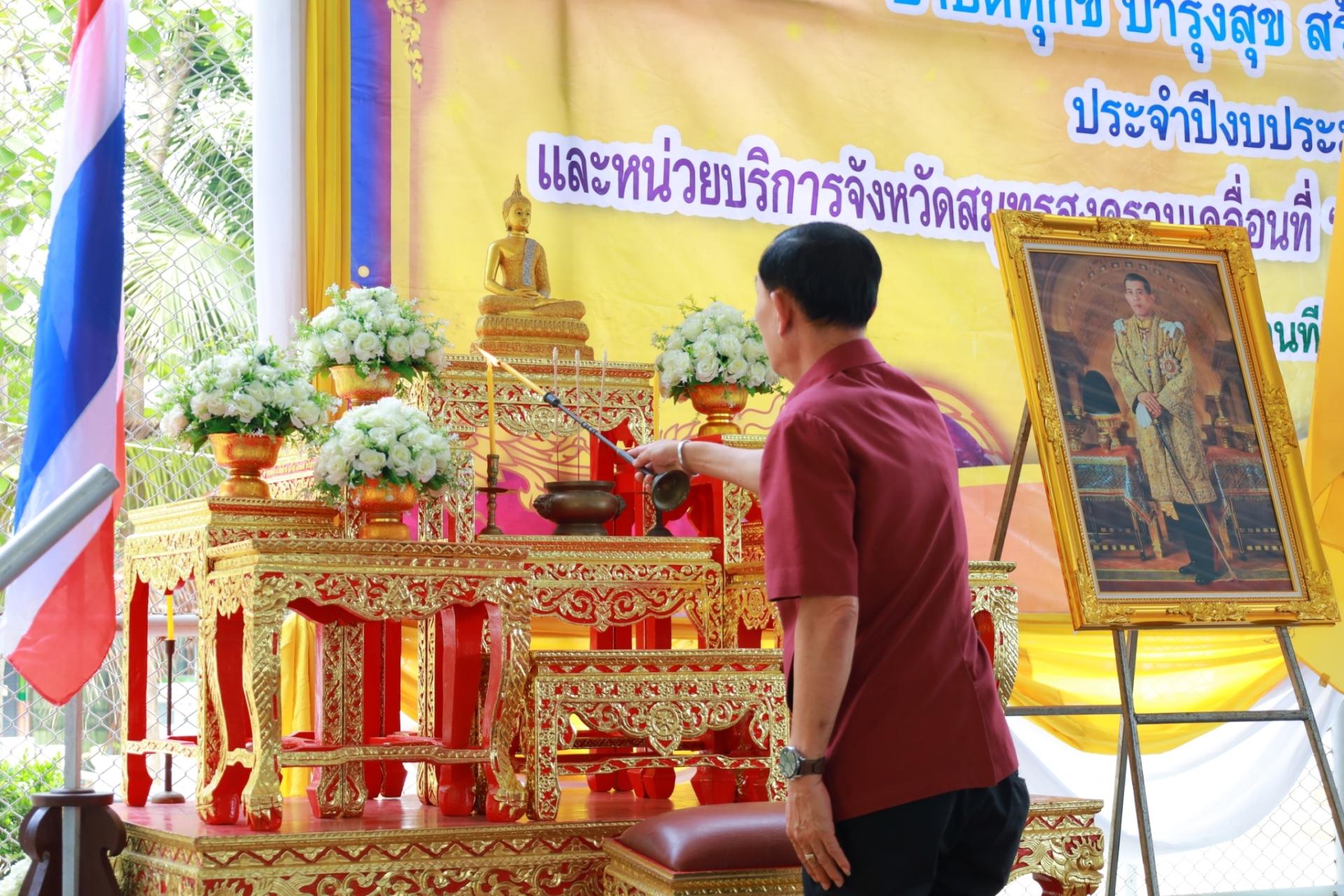 8 พฤษภาคม 2567 อบจ.สมุทรสงคราม โดยการนำของนางสาวกาญจน์สุดา ปานะสุทธะ นายกอบจ.สมุทรสงคราม มอบหมายให้นางสาวณัฐนันท์ แก้วกิตติวัฒน์ ผอ.กองการศึกษา ศาสนา และวัฒนธรรม พร้อมด้วยเจ้าหน้าที่อบจ. เข้าร่วมโครงการเสริมสร้างความจงรักภักดีต่อสถาบัน บำบัดทุกข์ บำรุงสุข สร้างรอยยิ้มให้ประชาชน(จังหวัดเคลื่อนที่) โดยมีนายศิริศักดิ์ ศิริมังคะลา ผู้ว่าราชการจังหวัด เป็นประธาน ณ วัดปราโมทย์ ต.บ้านปราโมทย์ อ.บางคนที จ.สมุทรสงคราม