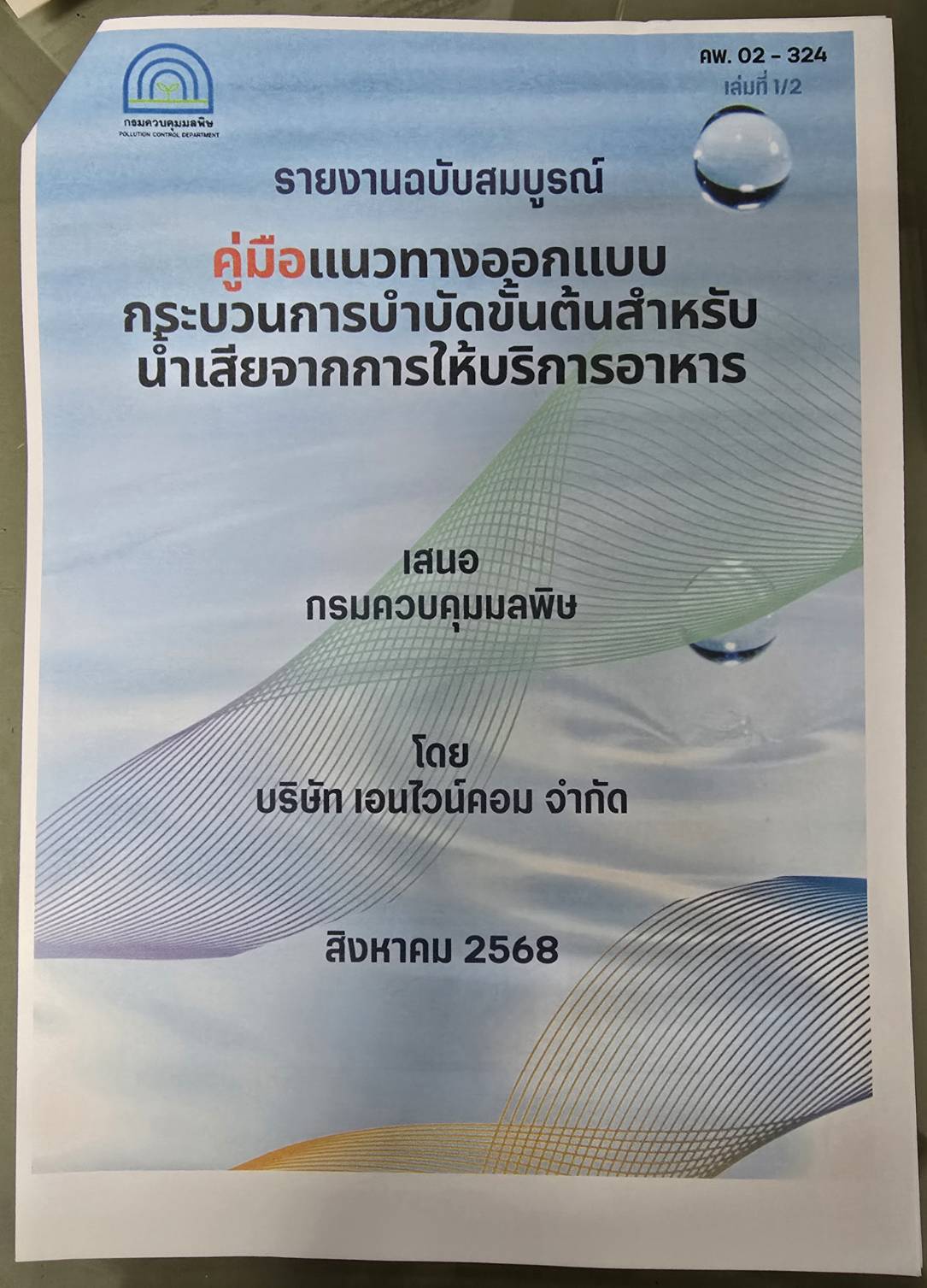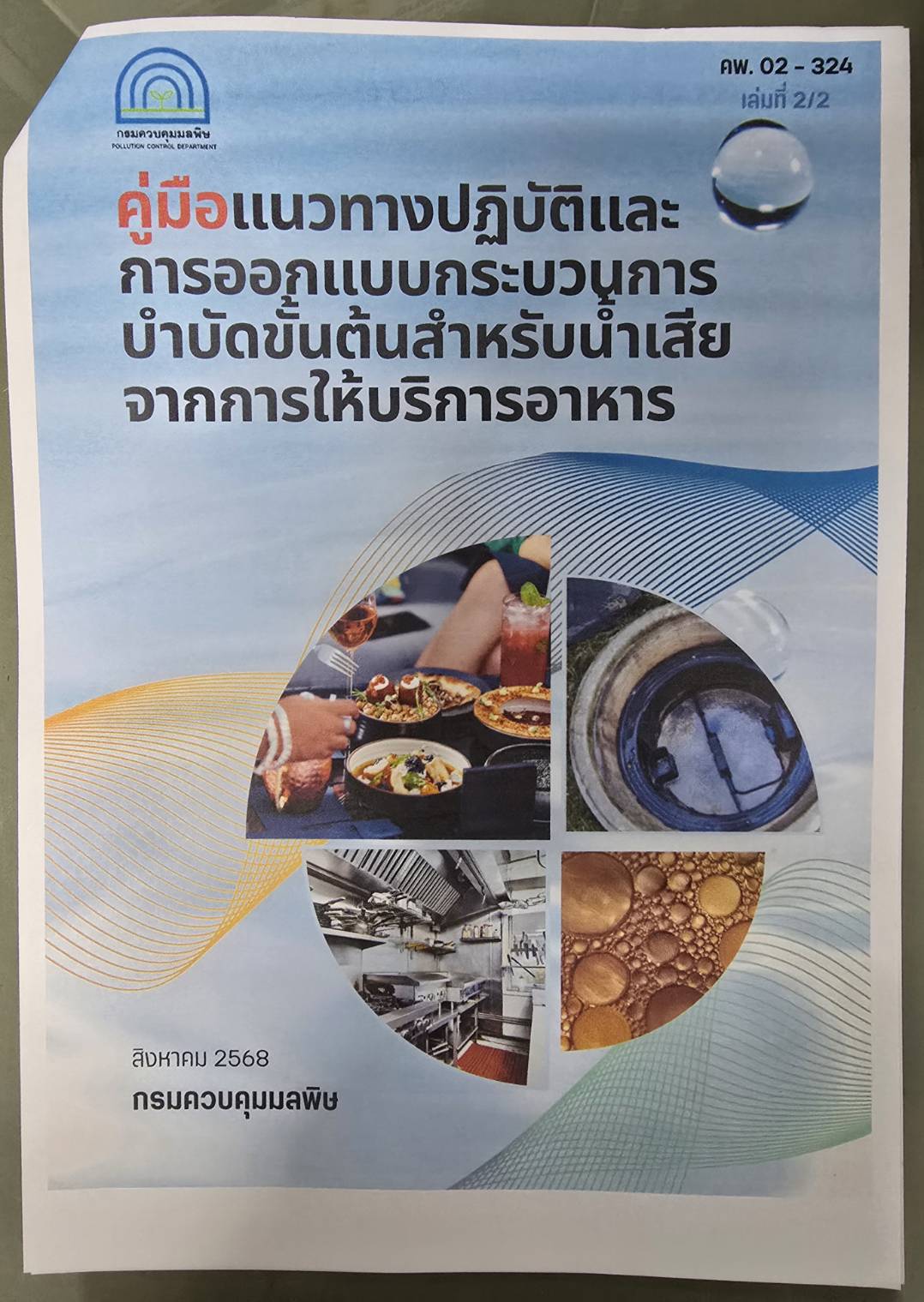 คู่มือแนวทางปฏิบัติและการออกแบบกระบวนการบำบัดขั้นต้นสำหรับน้ำเสียจากการให้บริการอาหารขอวกรมควบคุมมลพิษ