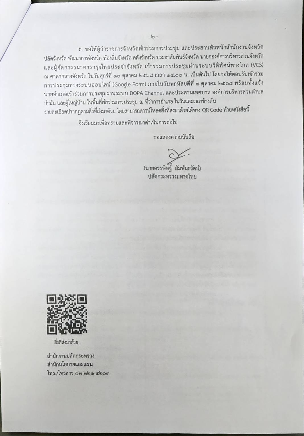 ขอเชิญเข้าร่วมการประชุมเตรียมการดำเนินโครงการ "คนละครึ่ง พลัส" ผ่านระบบวิดิทัศน์ทางไกล (VCS)