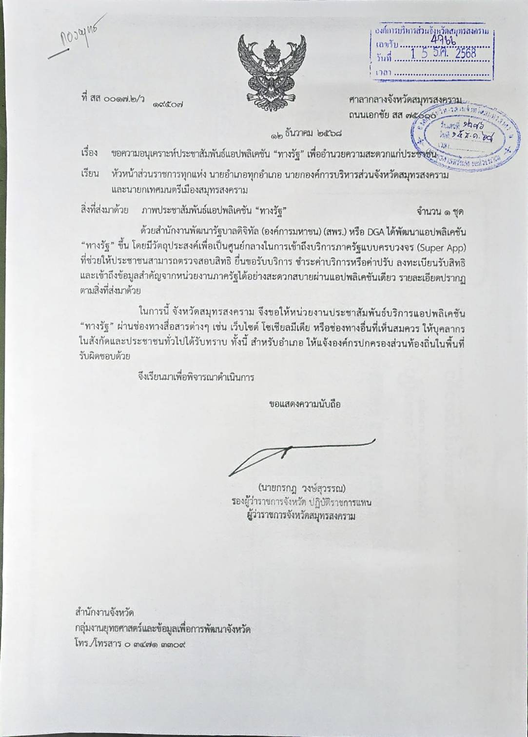 ประชาสัมพันธ์แอปพลิเคชัน "ทางรัฐ" เพื่ออำนวยความสะดวกแก่ประชาชน