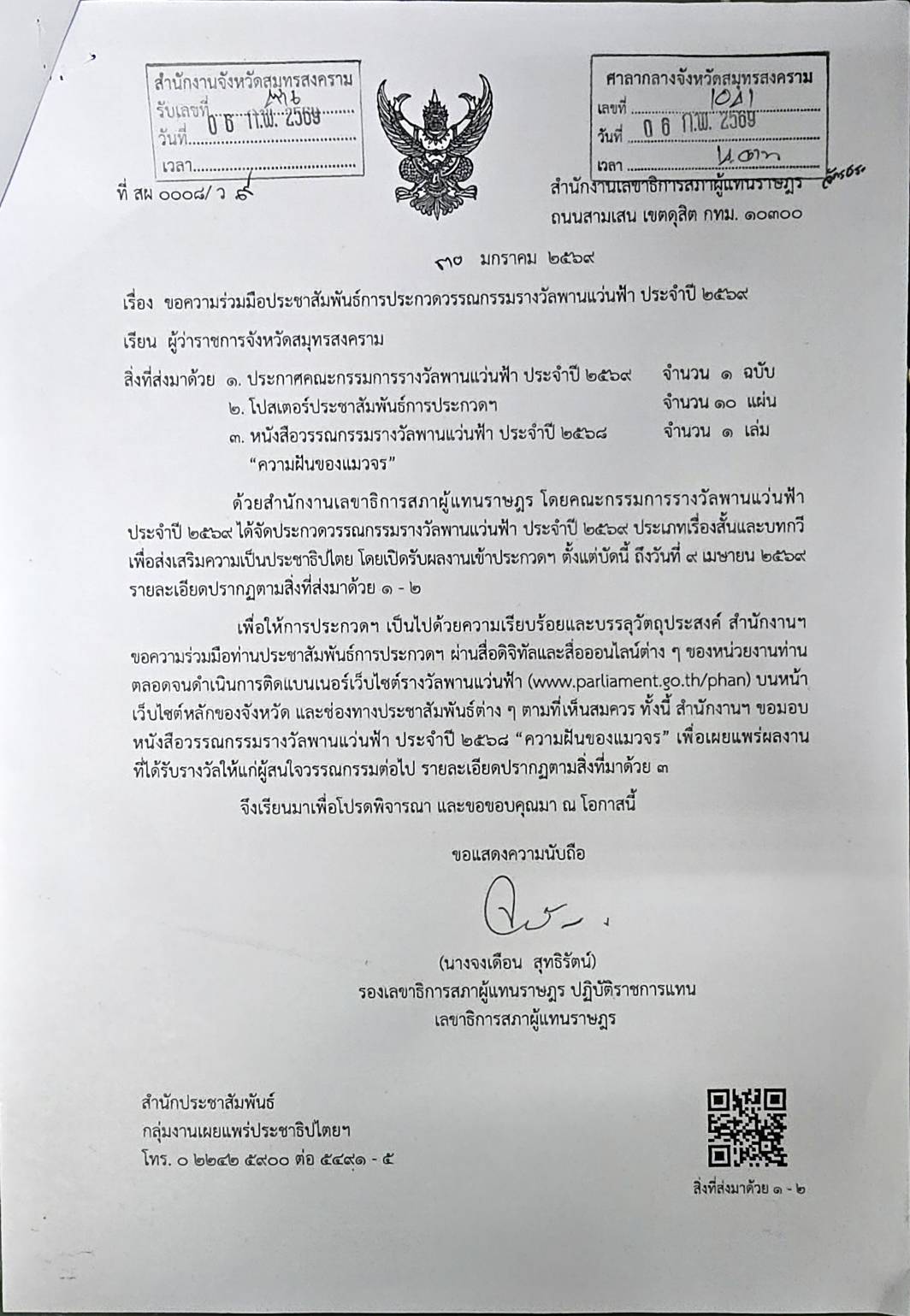 ประชาสัมพันธ์การประกวดวรรณกรรมรางวัลพานแว่นฟ้า ประจำปี ๒๕๖๙