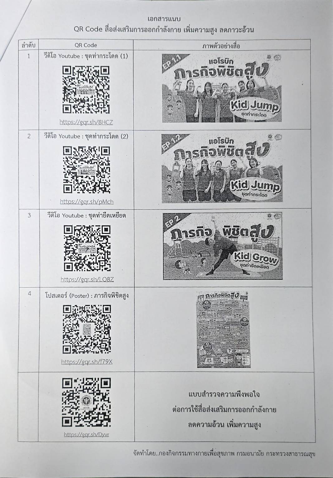 ประชาสัมพันธ์สื่อส่งเสริมการออกกำลังกาย เพิ่มความสูง ลดภาวะอ้วน