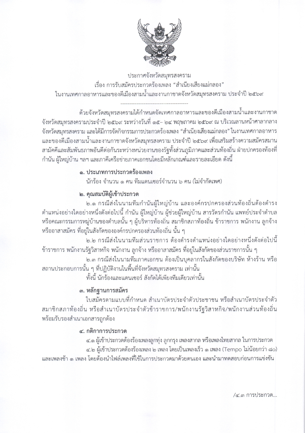 ขอประชาสัมพันธ์... การรับสมัครประกวดร้องเพลง "สำเนียงเสียงแม่กลอง" ในงานเทศกาลอาหารและของดีเมืองสามน้ำและงานกาชาดจังหวัดสมุทรสงคราม ประจำปี ๒๕๖๙